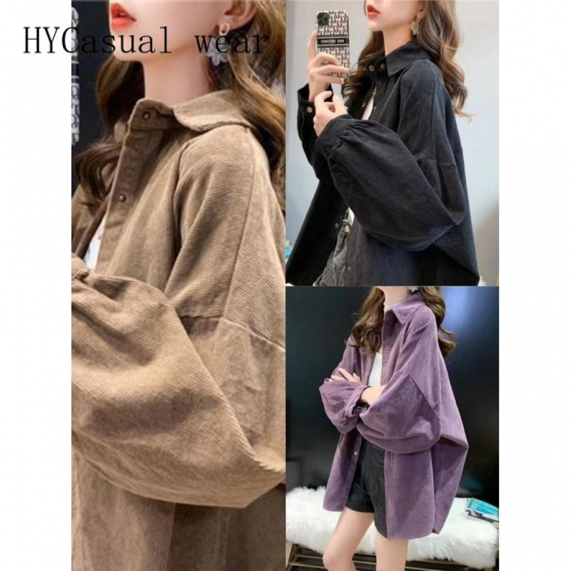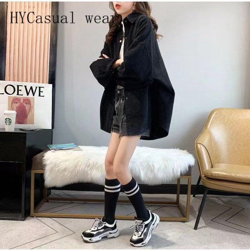 Corduroy autumn long-sleeved loose mid-length shirt jacket