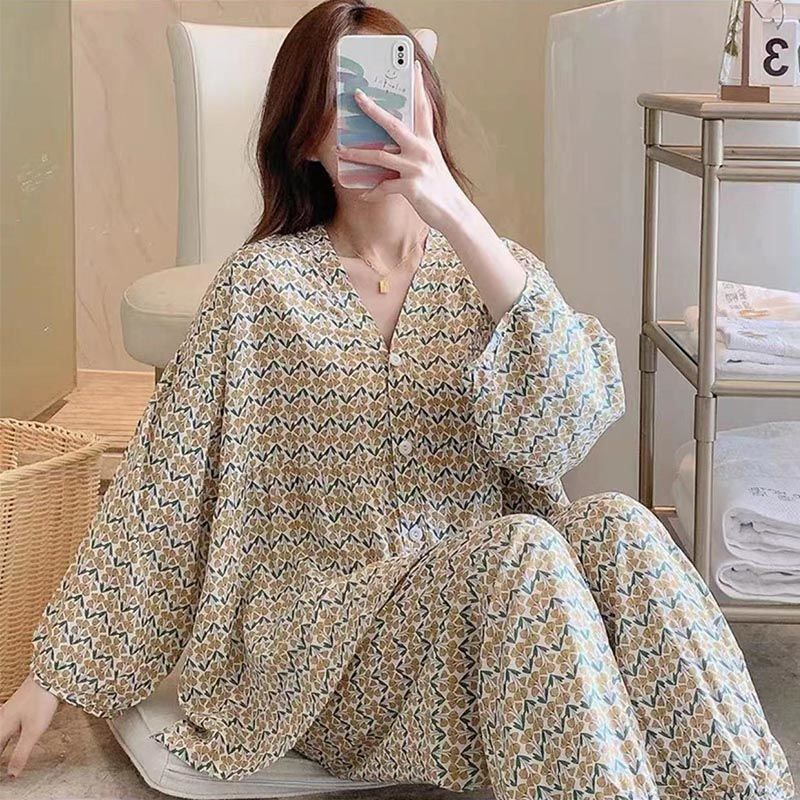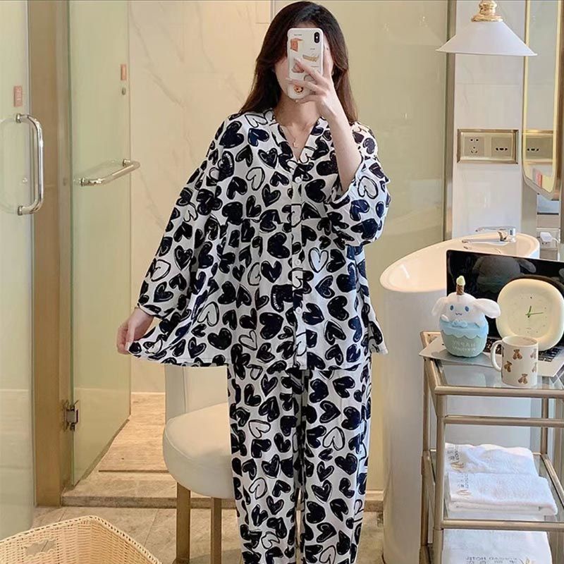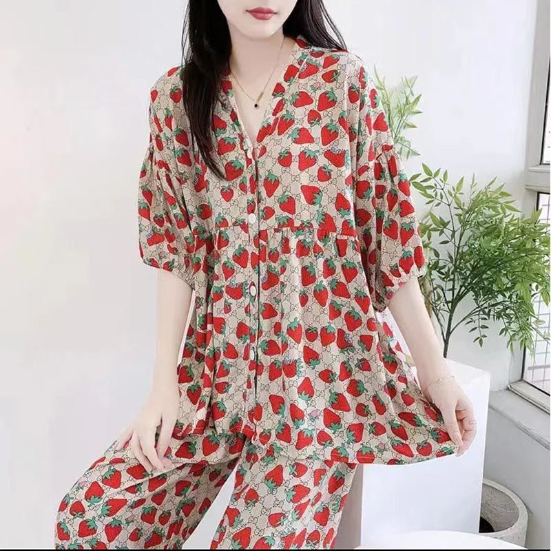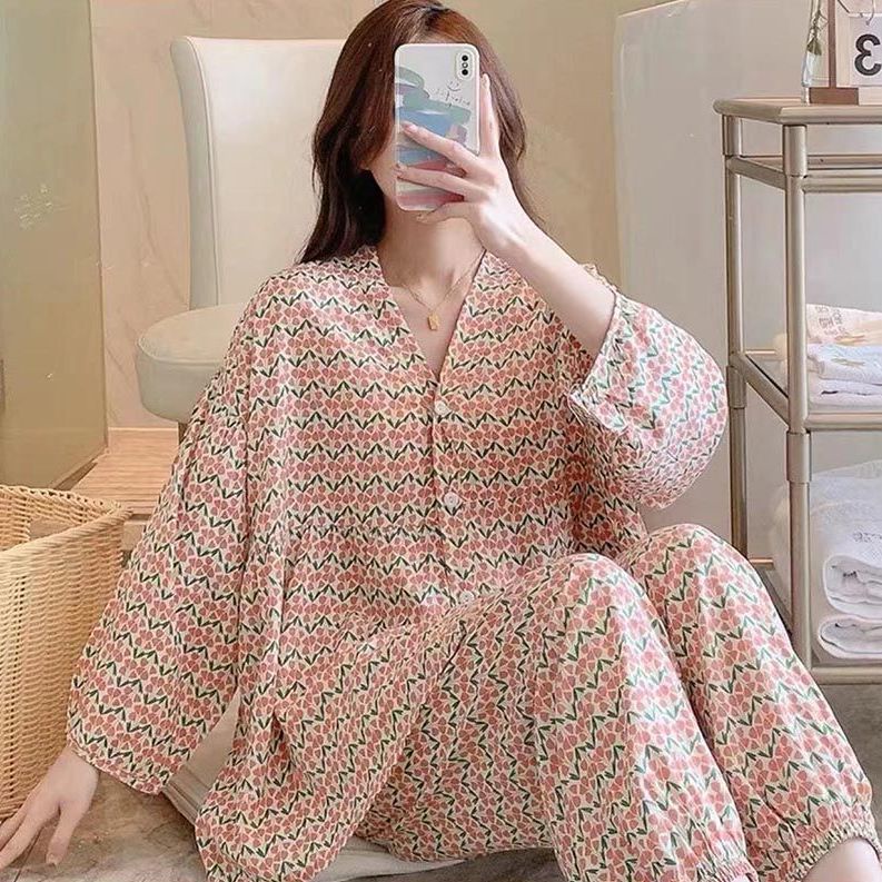 Cotton silk pajamas for women, spring and summer three-quarter sleeve trousers, thin suits, large size air-conditioned c