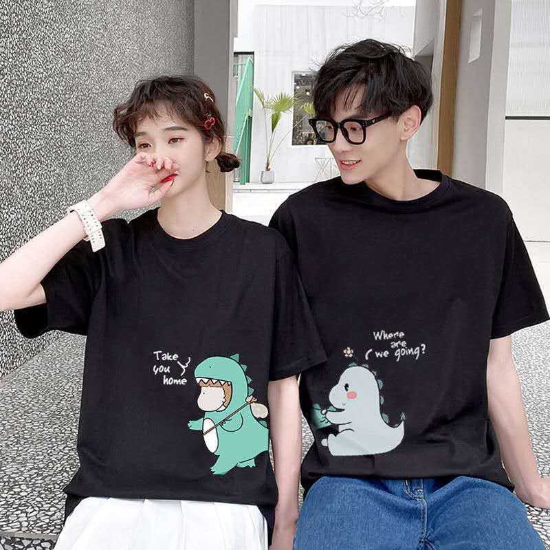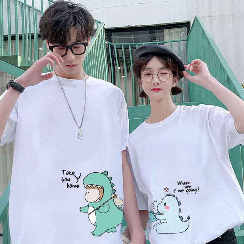 Couple T-shirt summer short sleeve T-shirt Korean dinosaur pattern QL25230