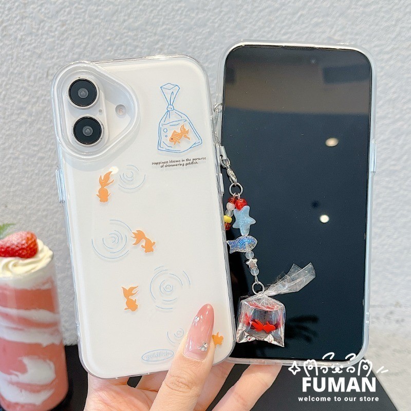Cream White Goldfish Phone Case For Infinix Itel S25 Ultra S23 Plus P65 P55 P40 Plus A90 A80 A70 A60 A60S A50C A06 A05S A04 5G 4G Goldfish Pendant Casing Simple Anti-fall Cover