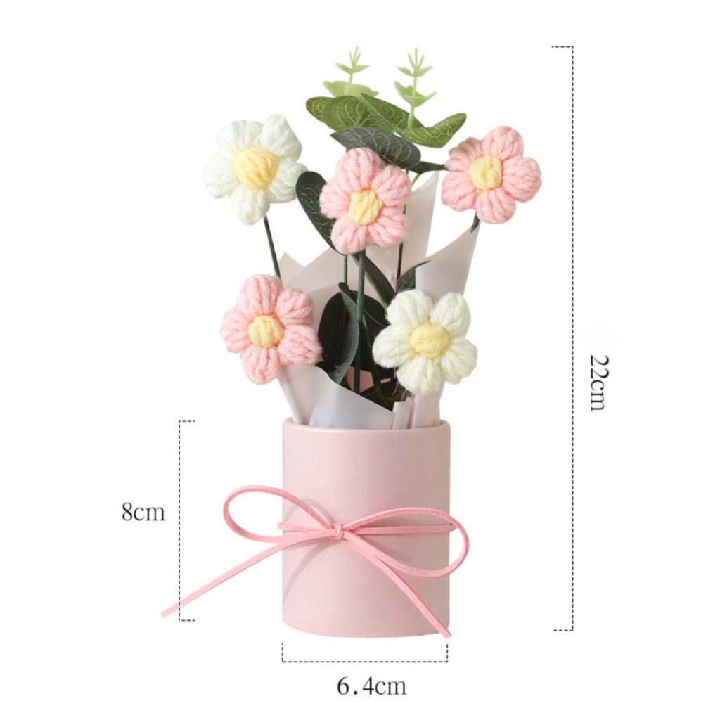 Crochet Knitting Flower In Pot Gift for Girl Mother Teacher Convo Anniversary Birthday Graduation (Bunga Kait)