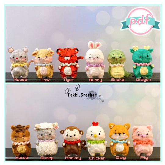 Crochet Pattern - 12 Zodiac Animals Part 1 & Part 2 Amigurumi Pattern PDF