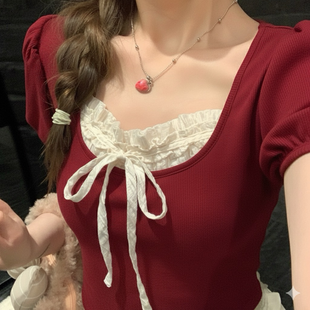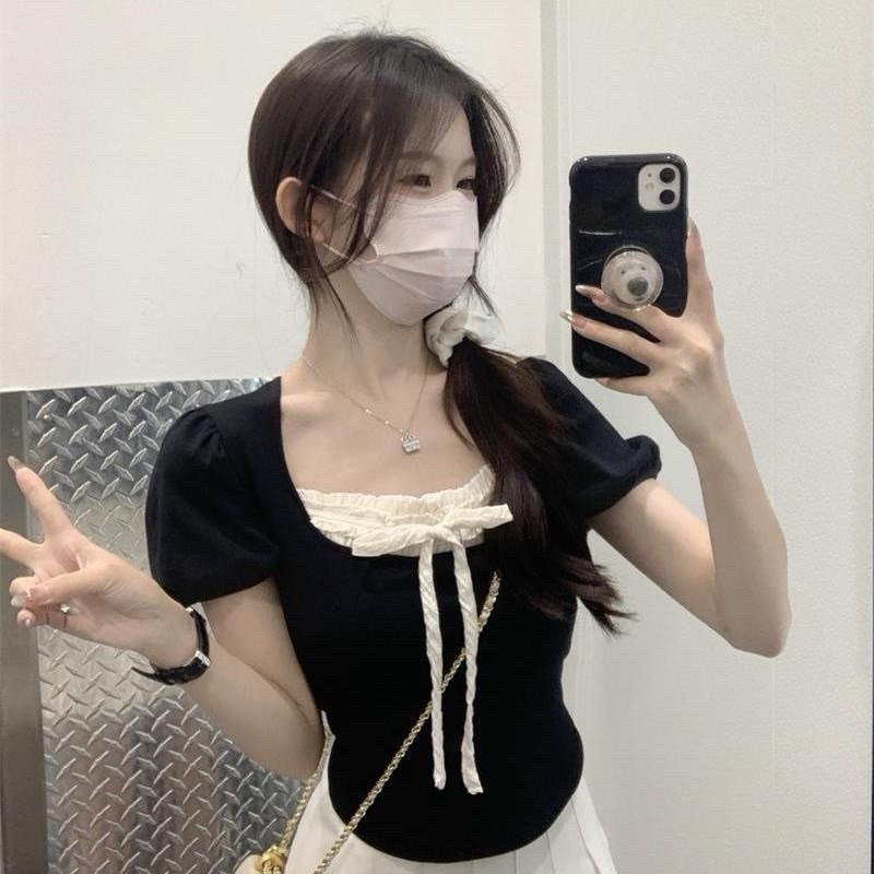 CROPTOP T-SHIRT WITH BOW TIE FRONT H660