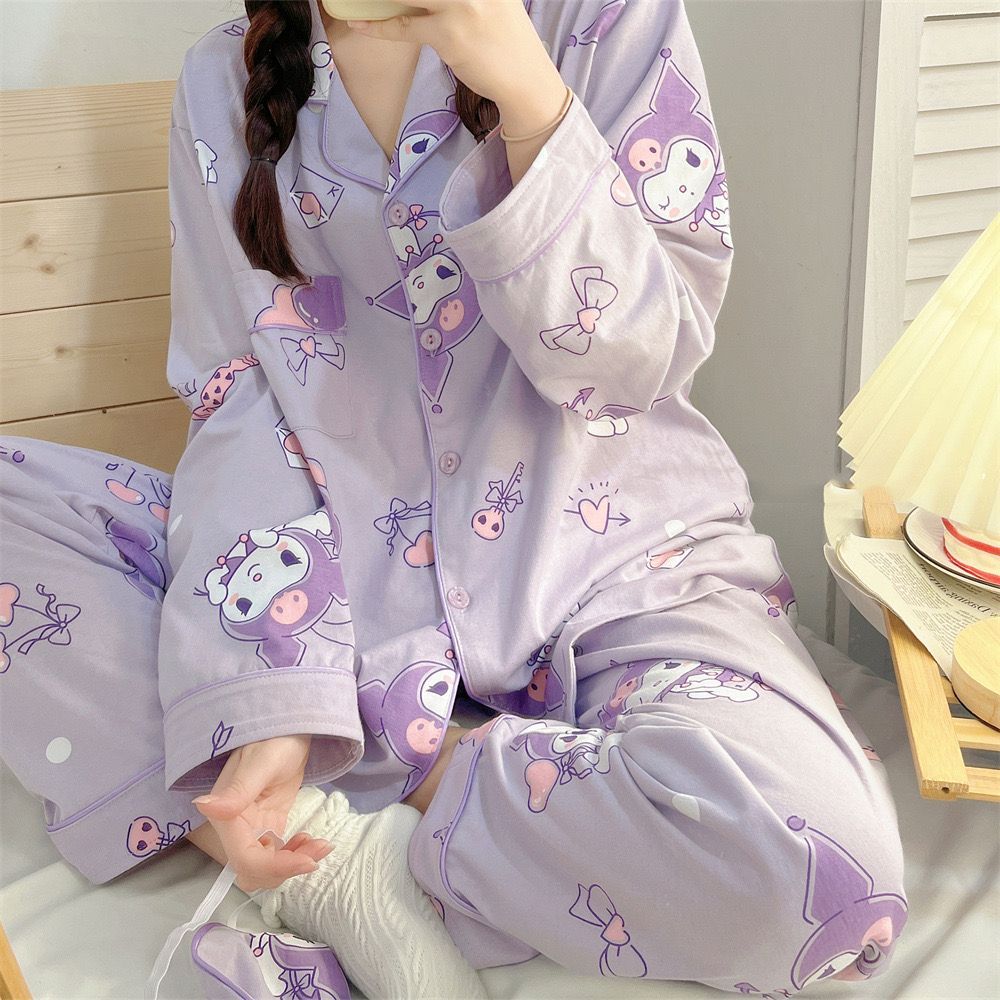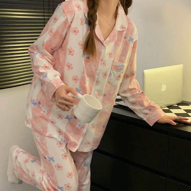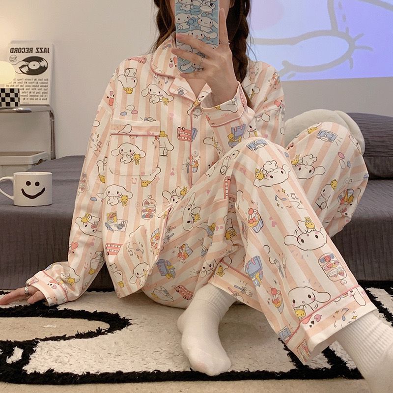 Cute Long Sleeve Pyjamas Women Baju Tidur Wanita Sleepwear Nightwear Women Pajamas Women Set 长袖睡衣女套装