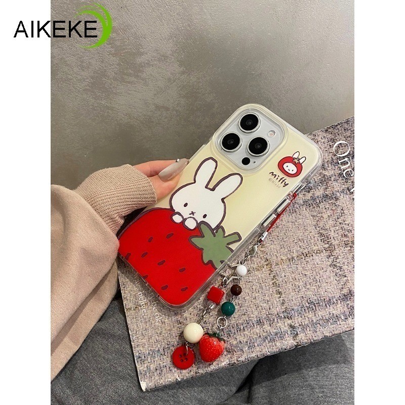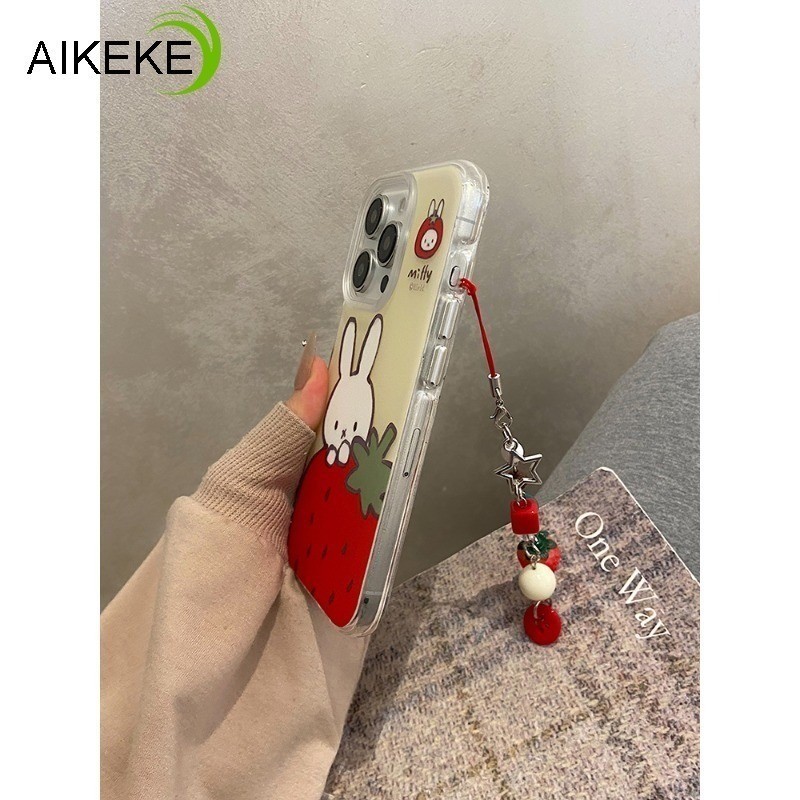 Cute Strawberry Bunny Casing For Infinix Itel S25 Ultra S23 Plus P65 P55 P40 Plus A90 A80 A70 A60 A60S A50C A06 A05S A04 5G 4G Cute Strawberry Bracelet Phone Case Clear Back Cover