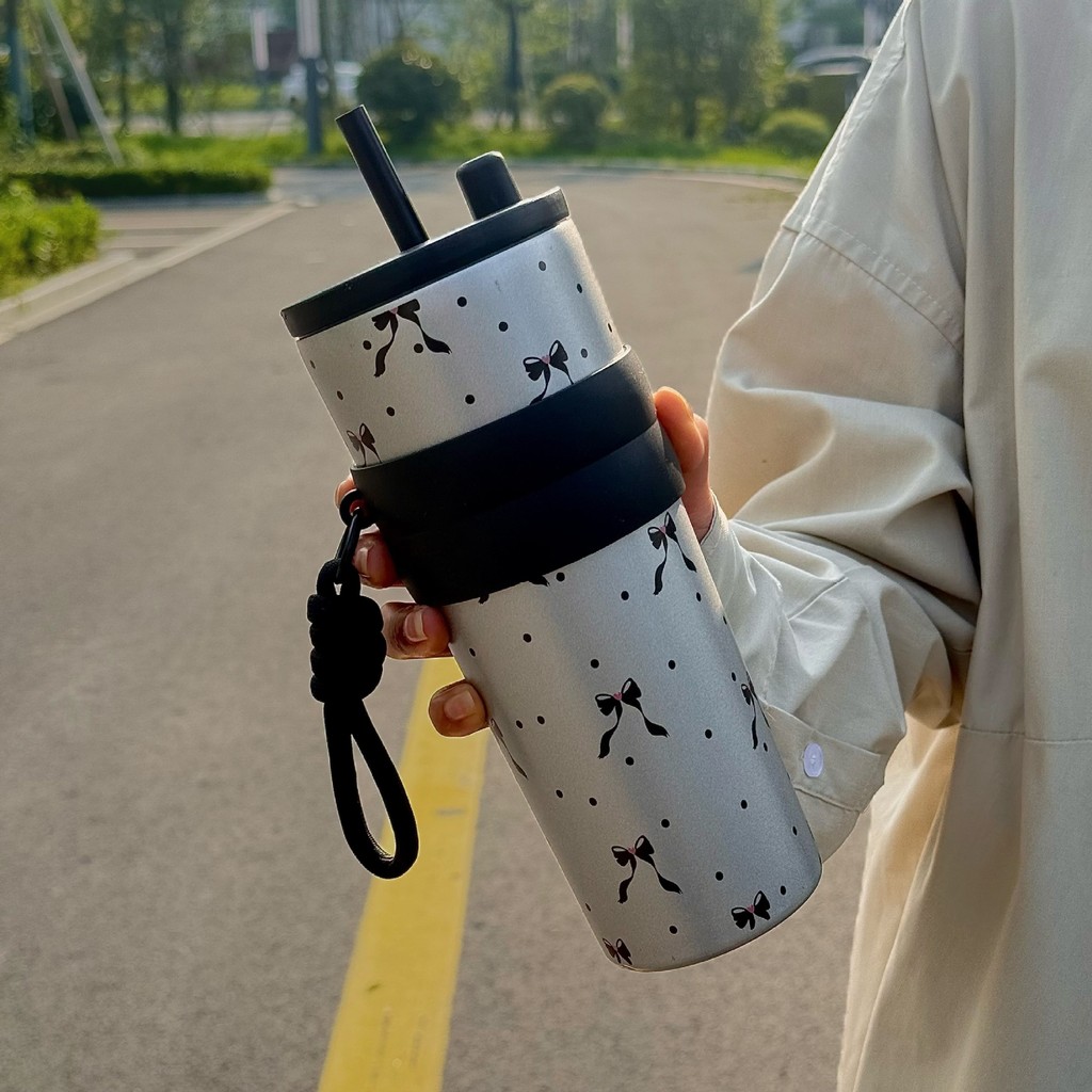 Cute Tumbler 710ML with Straw | 316 Stainless Steel Thermos Water Bottle Leak-Proof Insulated Botol Air Comel Flask