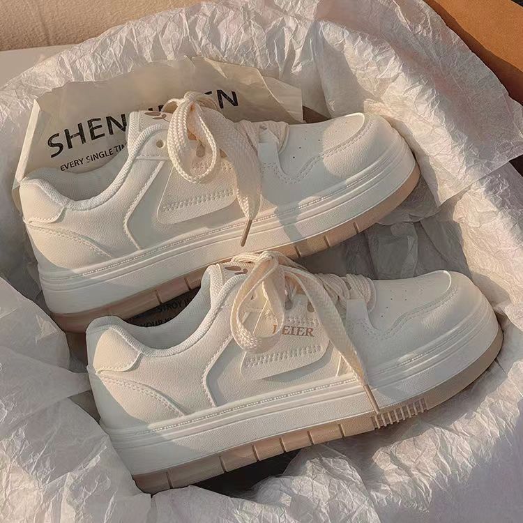 Cute white shoes for women breathable versatile thick-soled height-increasing super popular sneakers
