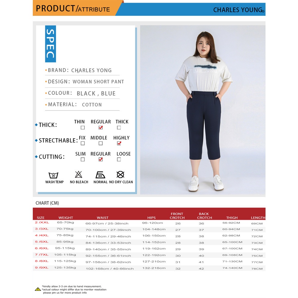 CY 4738 (XXL-9XL) WOMAN CASUAL SHORT PANTS BIG PLUS SIZE / SELUAR PENDEK SIZE BESAR / WOMAN CROPPED PANTS 7XL 8XL 9XL