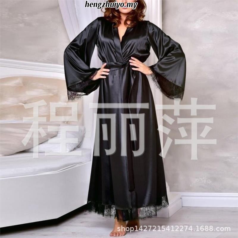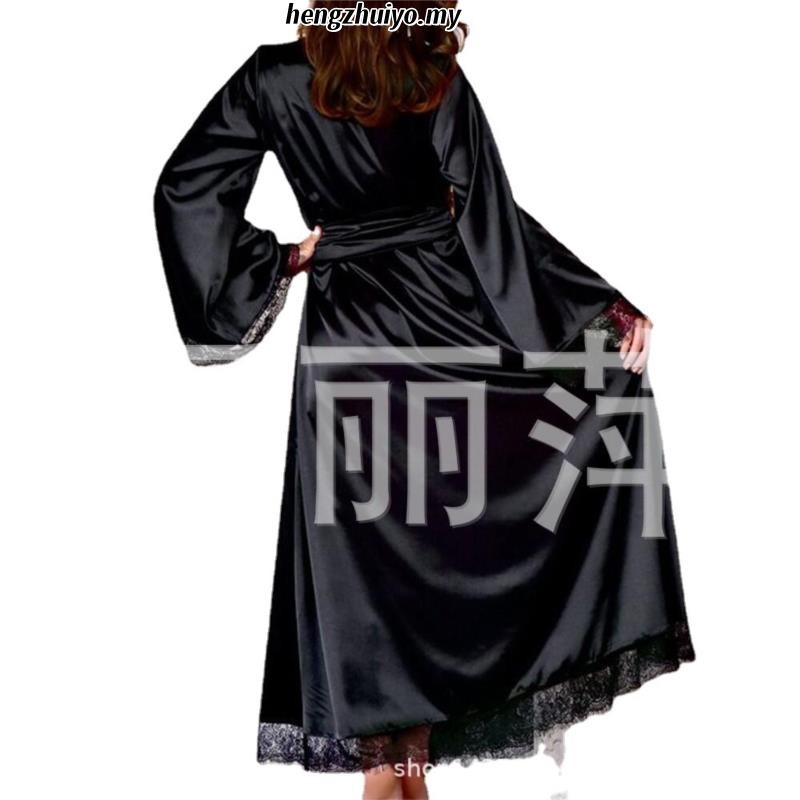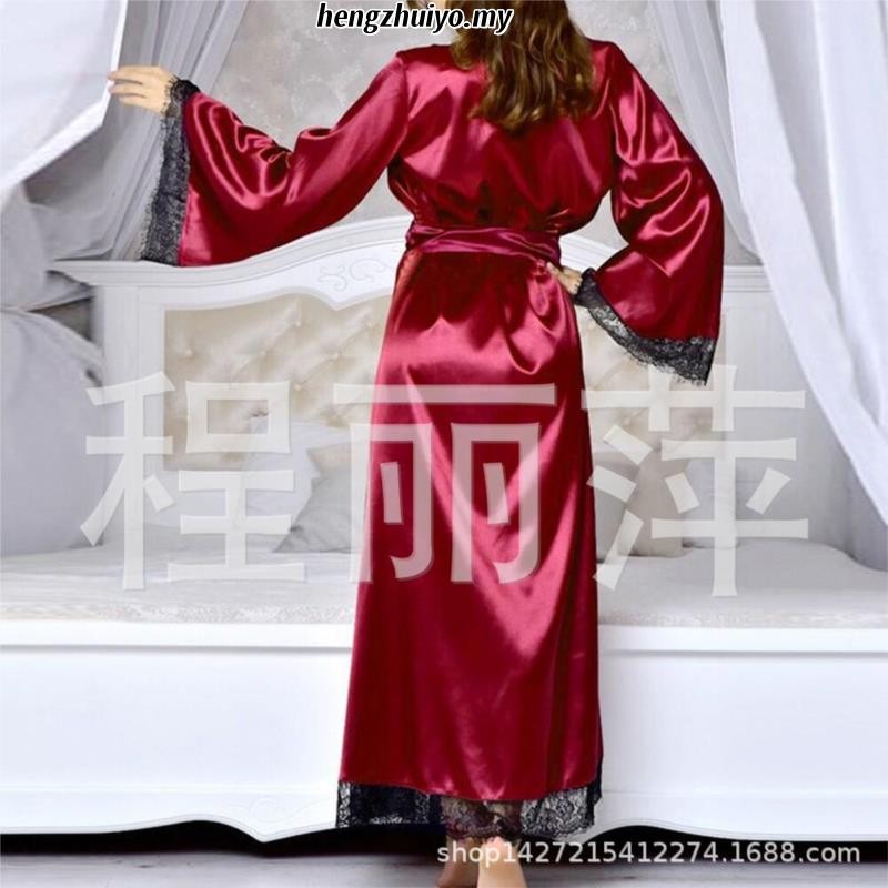 d e n i s e sWomen Sexy Long Silk Dressing Bath Robe Lace Lingerie Wine Red Nightdress