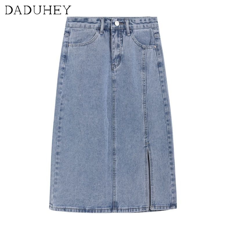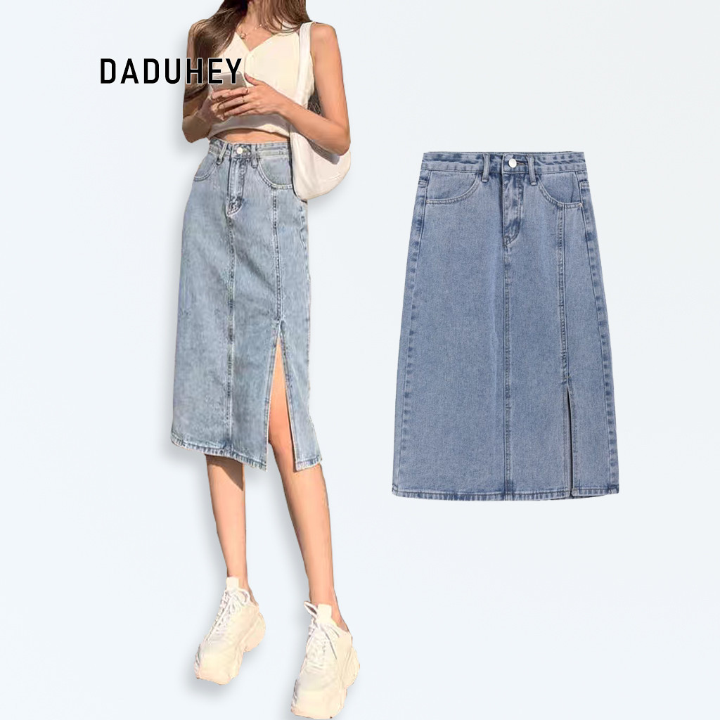 Daduhey baju raya perempuan Women's Mid-Length Korean Style Denim Skirt