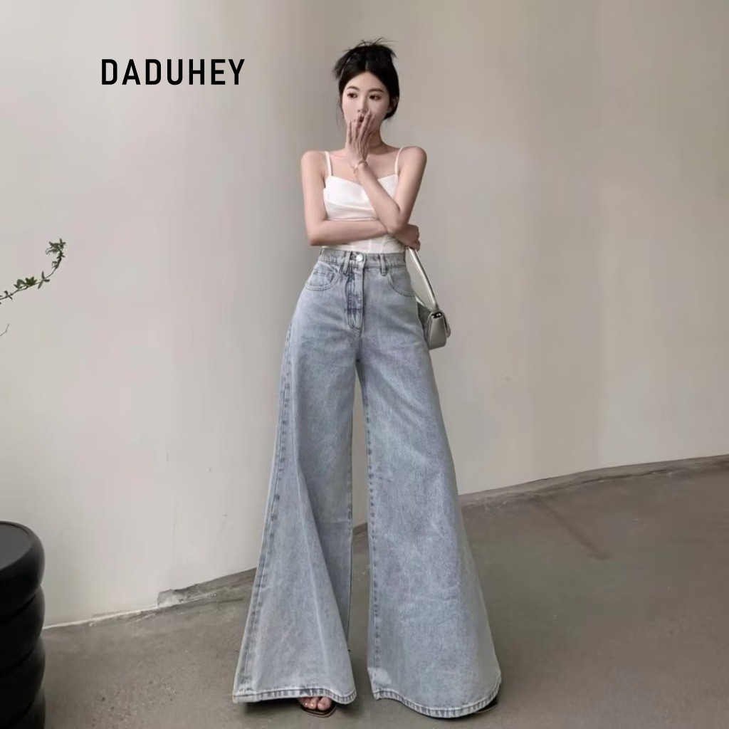 DaDuHey Distressed High Waist Wide Leg Jeans Loose Slimming Loose Trousers Mop Jeans Pants For Women