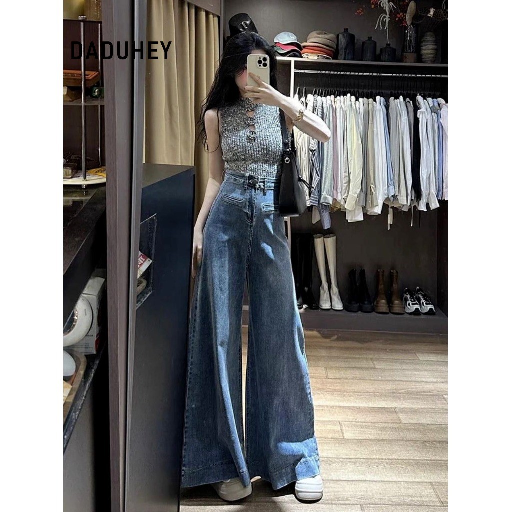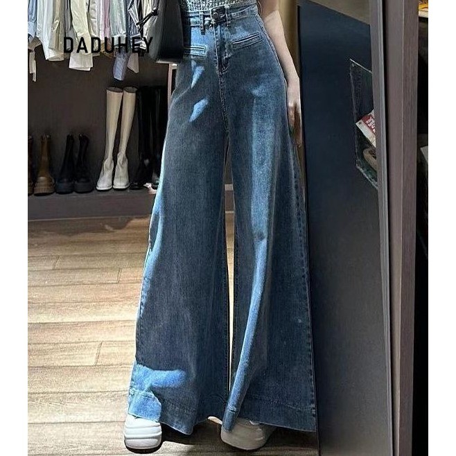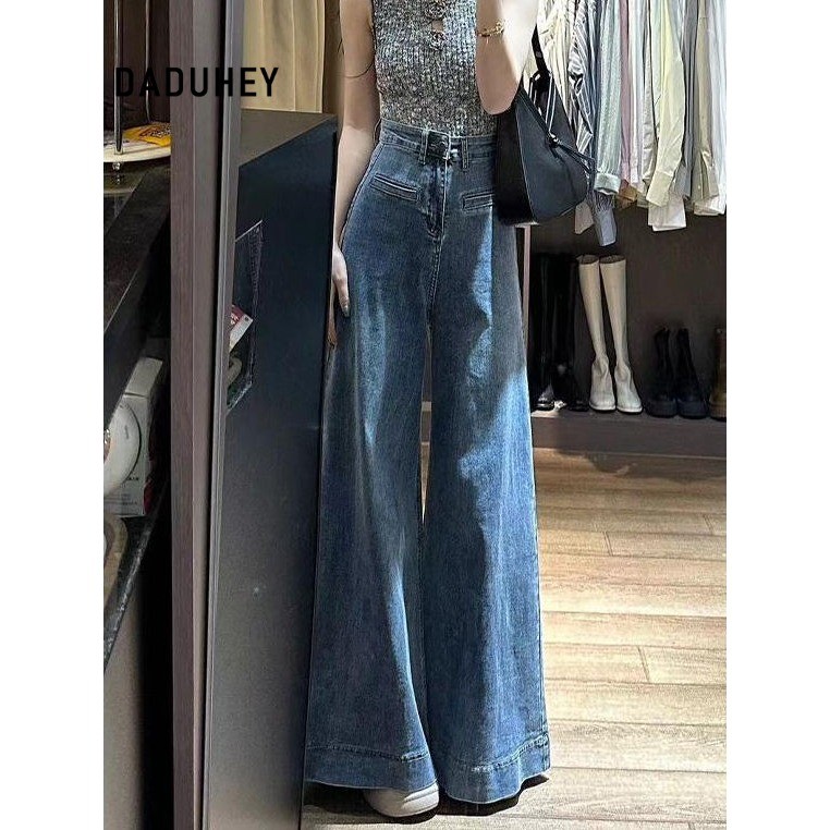 DaDuHey Straight Slightly Flared Wide Leg Jeans High Waist All-Matching Loose Mop Pants For Women