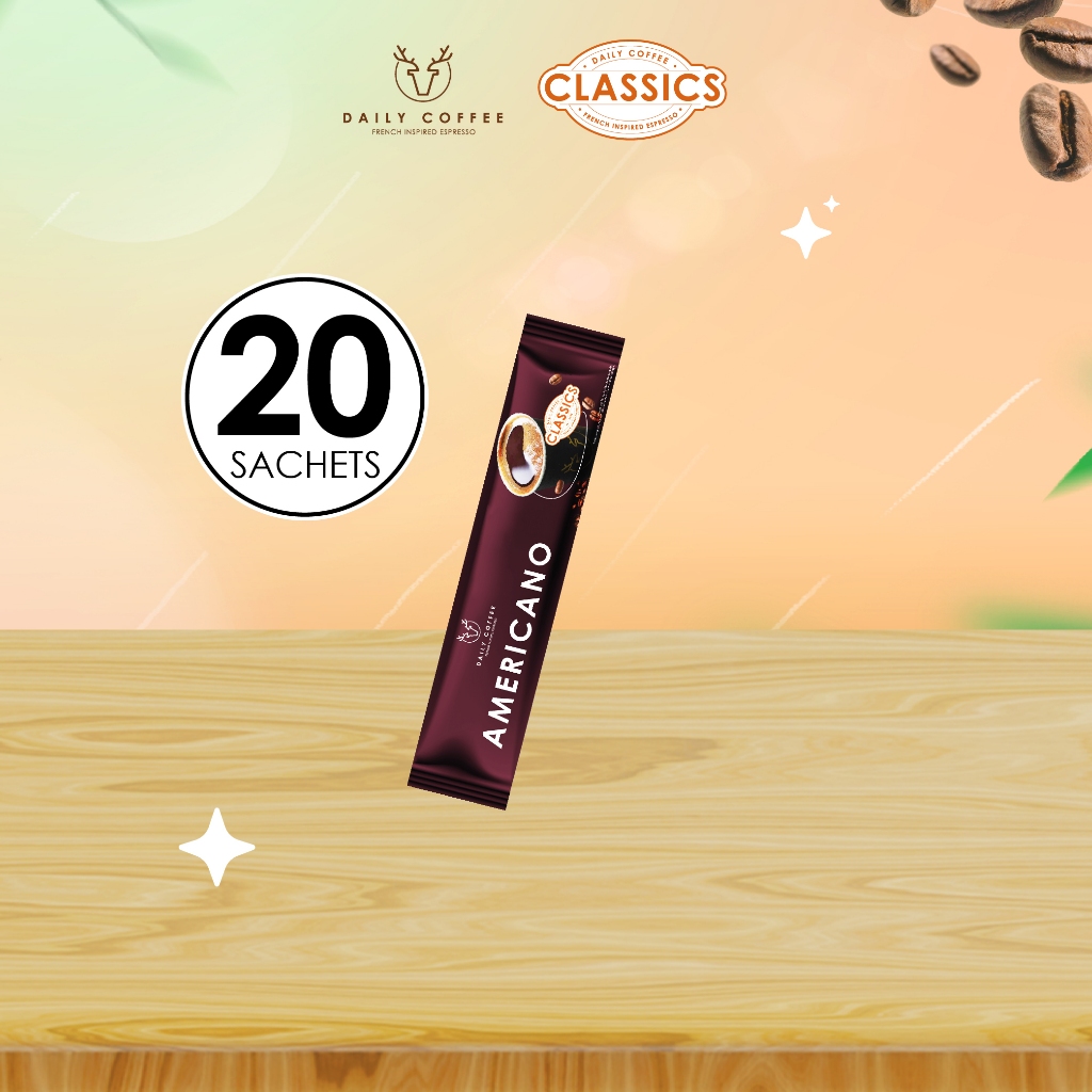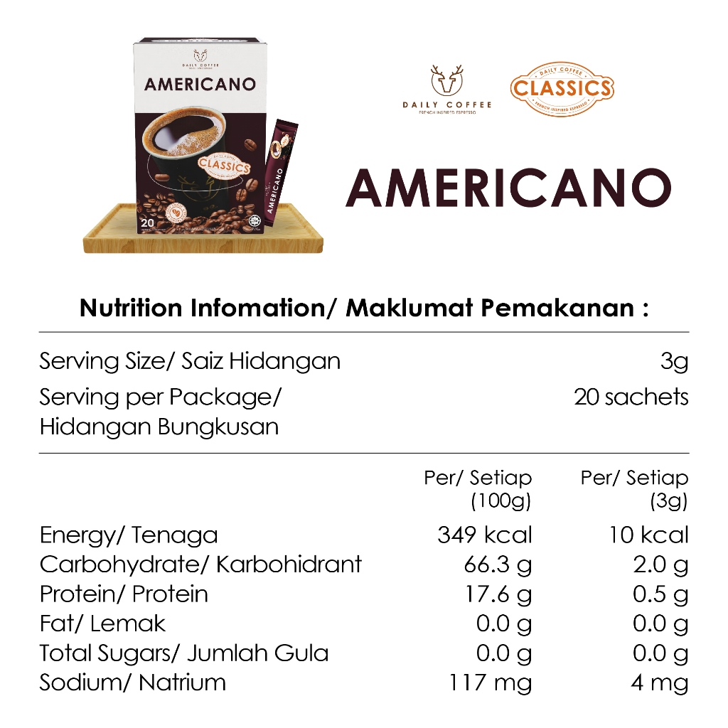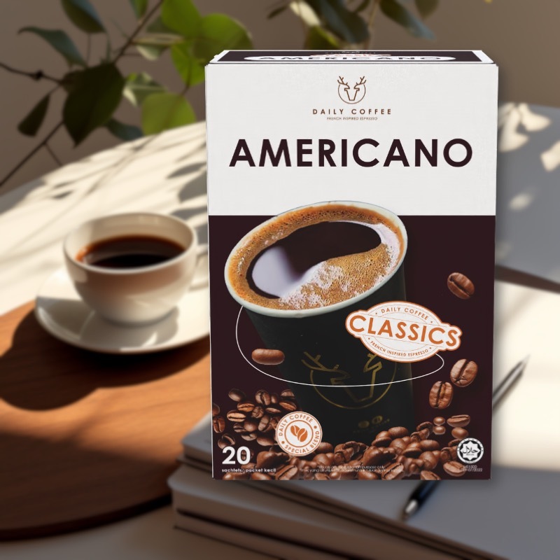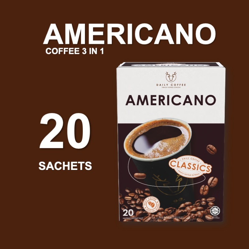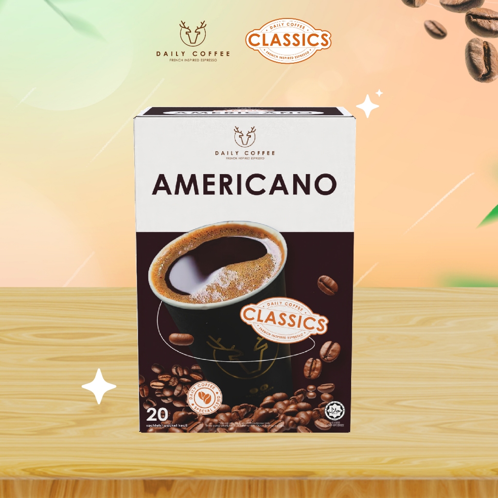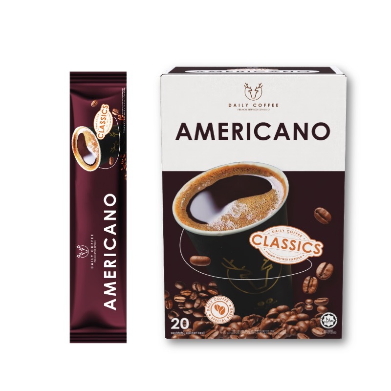 Daily Coffee Americano Instant Coffee 20 Sachets Pure Soluble Coffee No Sugar No Creamer Halal Certified Drink