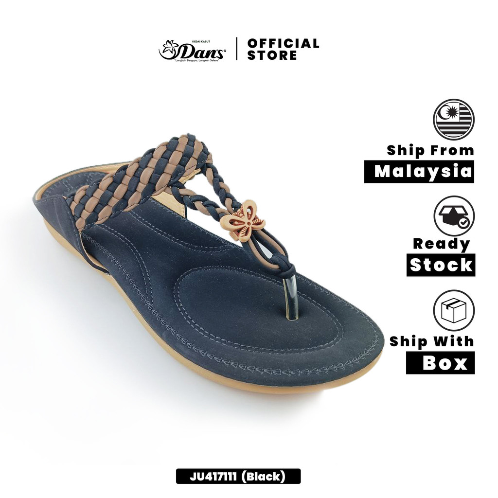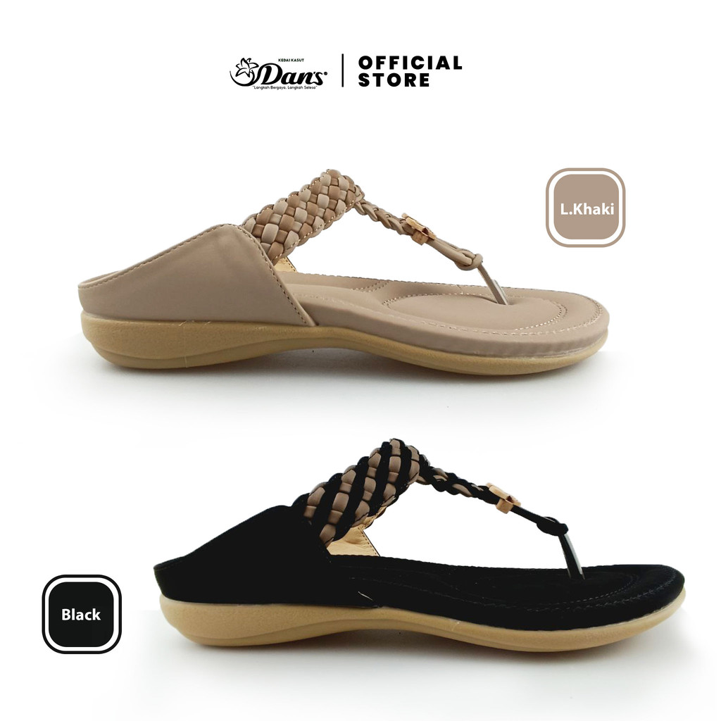 Dan's Selipar Ringan Wanita / Perempuan - Hitam / Khaki Muda JU417111