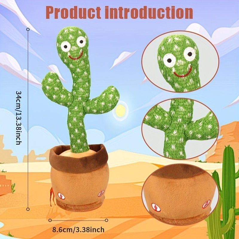 Dancing Cactus 120 English Songs Tiktok Hot Plush Toys Musical Toys Birthday Gift