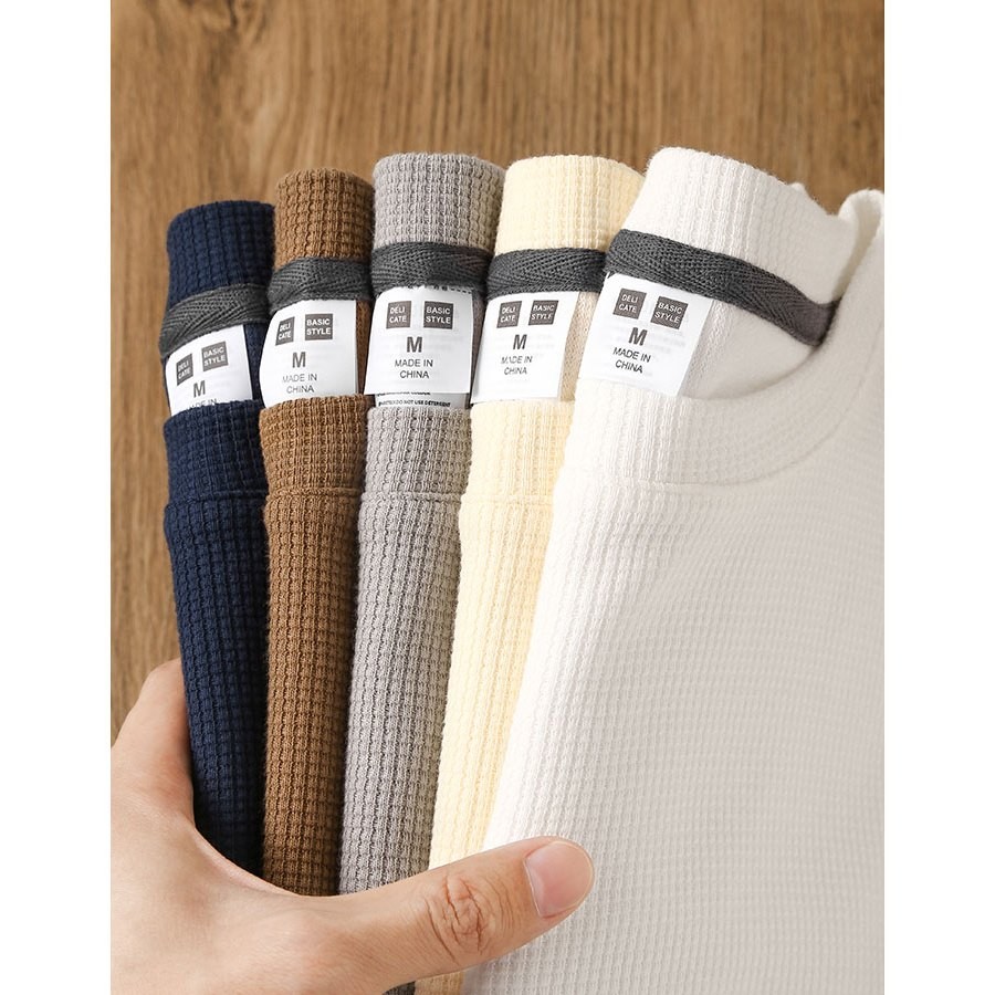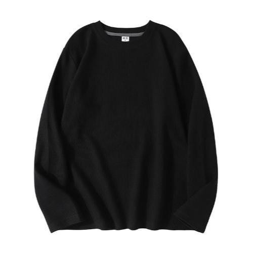 Dari Johor~BeCoolMAN baju lelaki men long sleeve plain tee waffle premium tshirt unisex crew neck korean shirt black