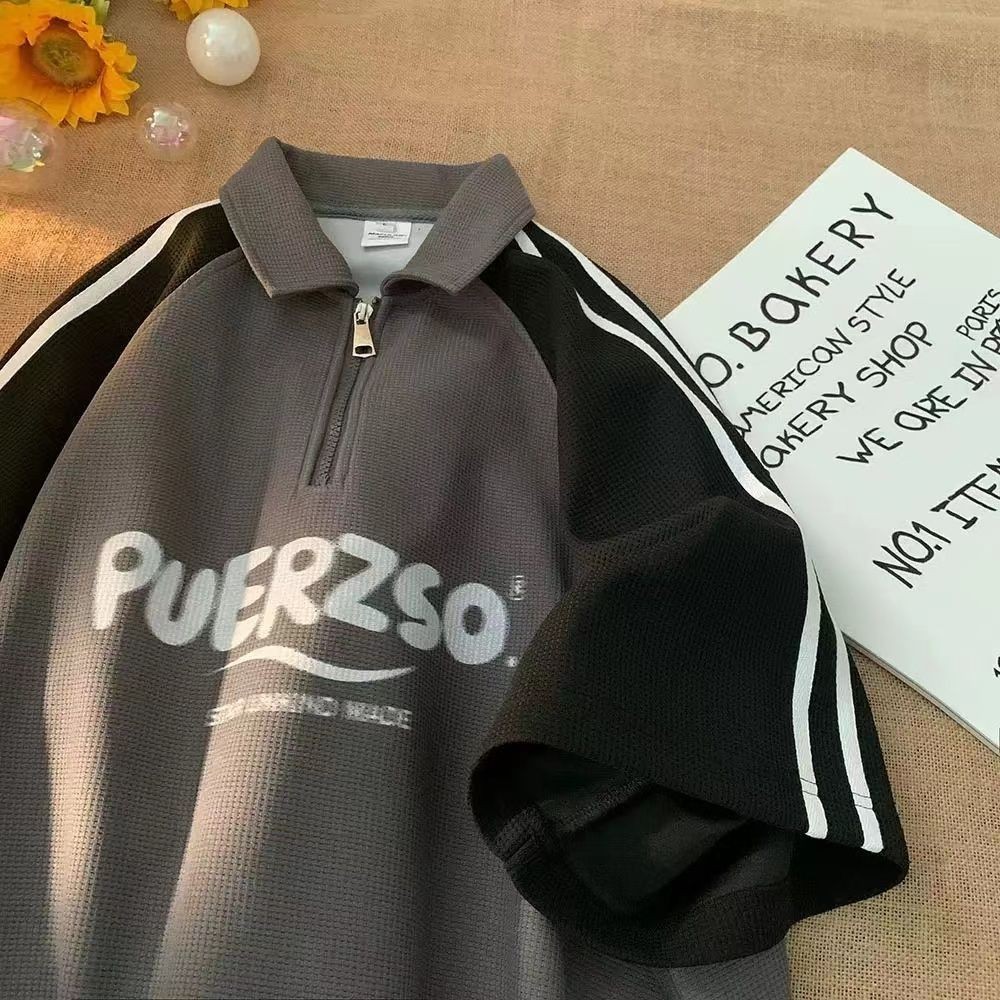 Dari Johor~BeCoolMAN Men's Color-block 3 Bar Street Retro Half-zip Short-sleeved Polo Shirt T-shirt baju polo lelaki
