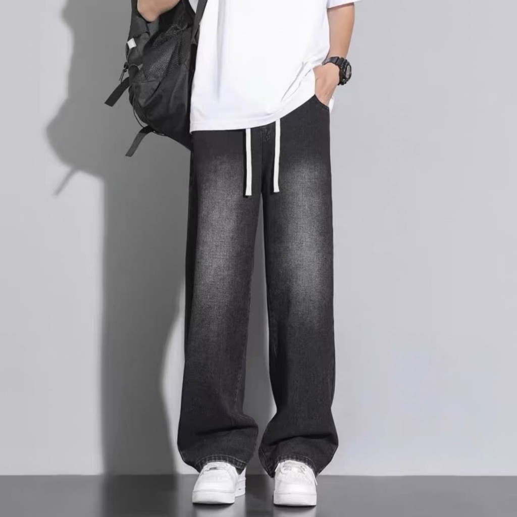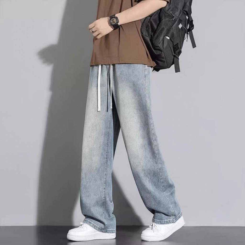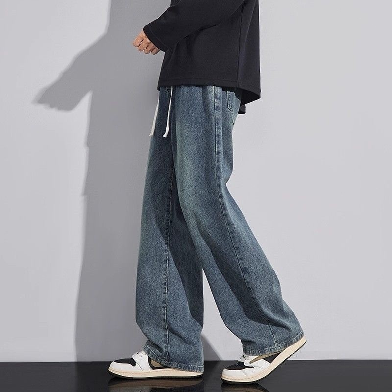 Dari Johor~BeCoolMAN Seluar jeans lurus lelaki warna biru pudar vintaj Retro Blue Stylish and Versatile