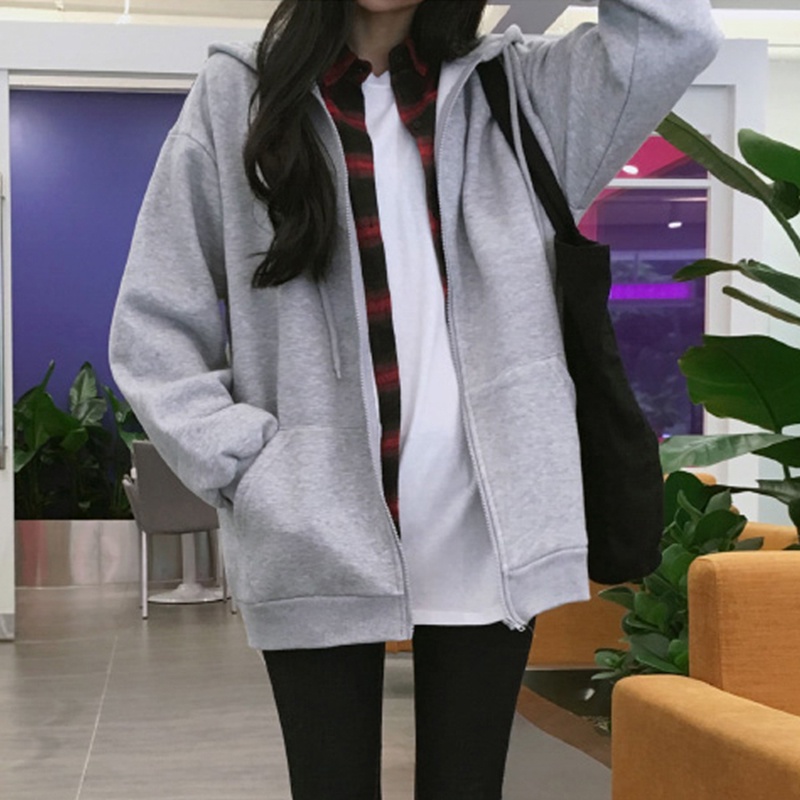 ~Dari KL~Jaket Uniseks Jaket longgar Korean Plain Unisex Jacket Outerwear Women's jacket Men Jacket Hoodie unisex