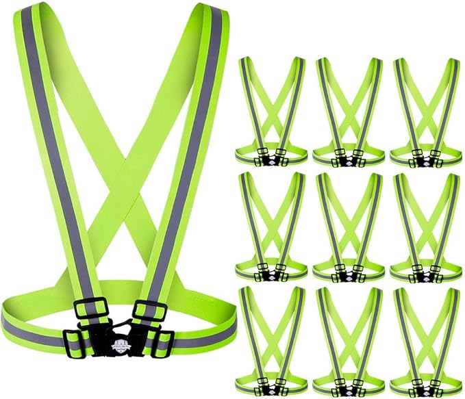 Dazonity High Visibility Safety Vest,10 Packs,Lightweight,Adjustable & Elastic Vest,Hi Vis Reflective Strips, Fit for Men & Women, Construction,Cycling, Runnning, Surveyor, (Yellow)