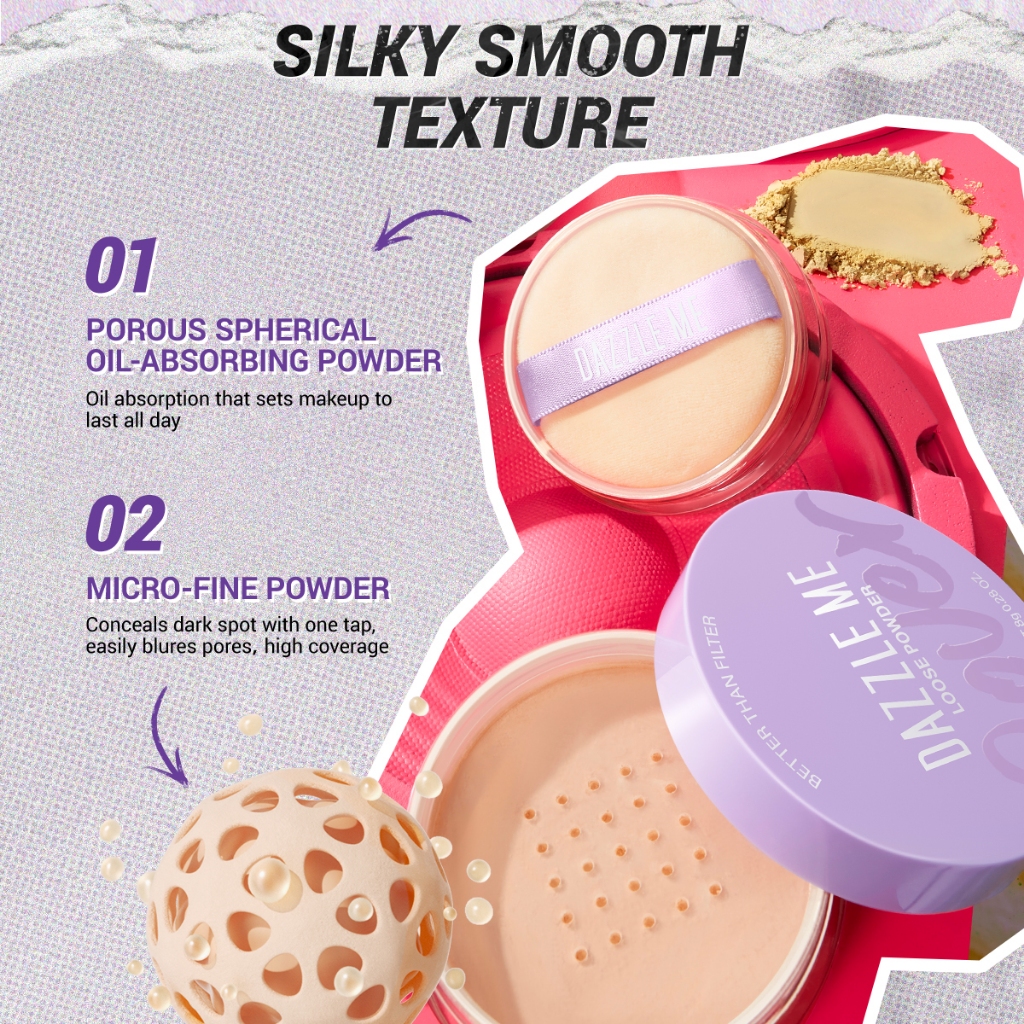 DAZZLE ME Better Than Filter Fixed Loose Powder – Oil Control, 12H Long-Lasting, Perfect for Acne-Prone Skin