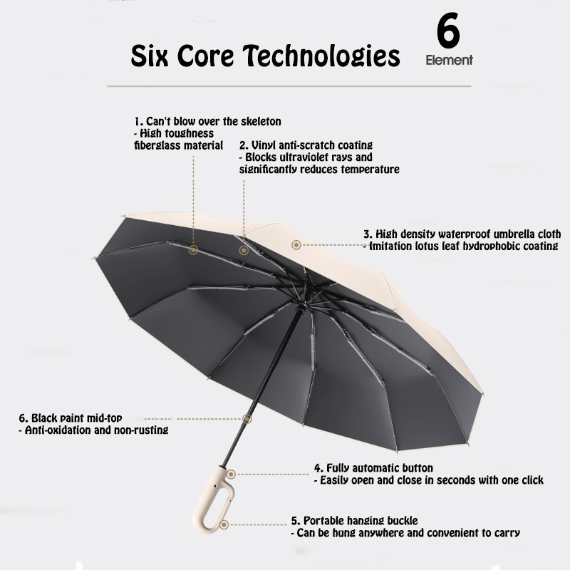 Decco Folding Umbrella Large Size Sunshade Fully Automatic Umbrella Thickened Ring Buckle Design UPF50+