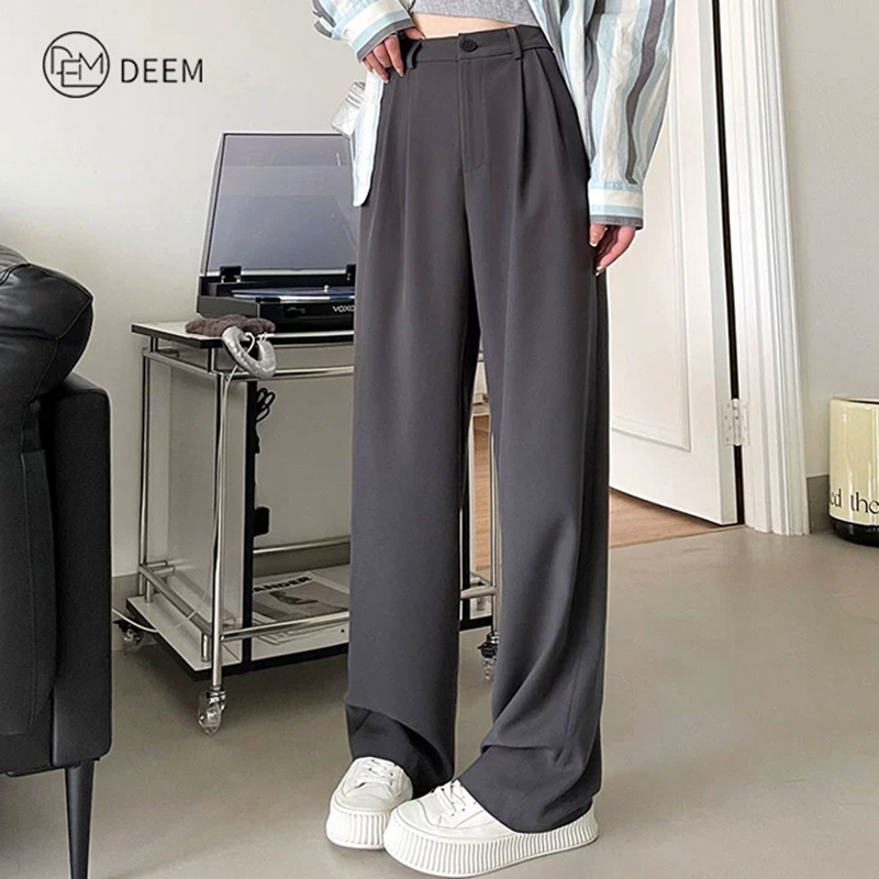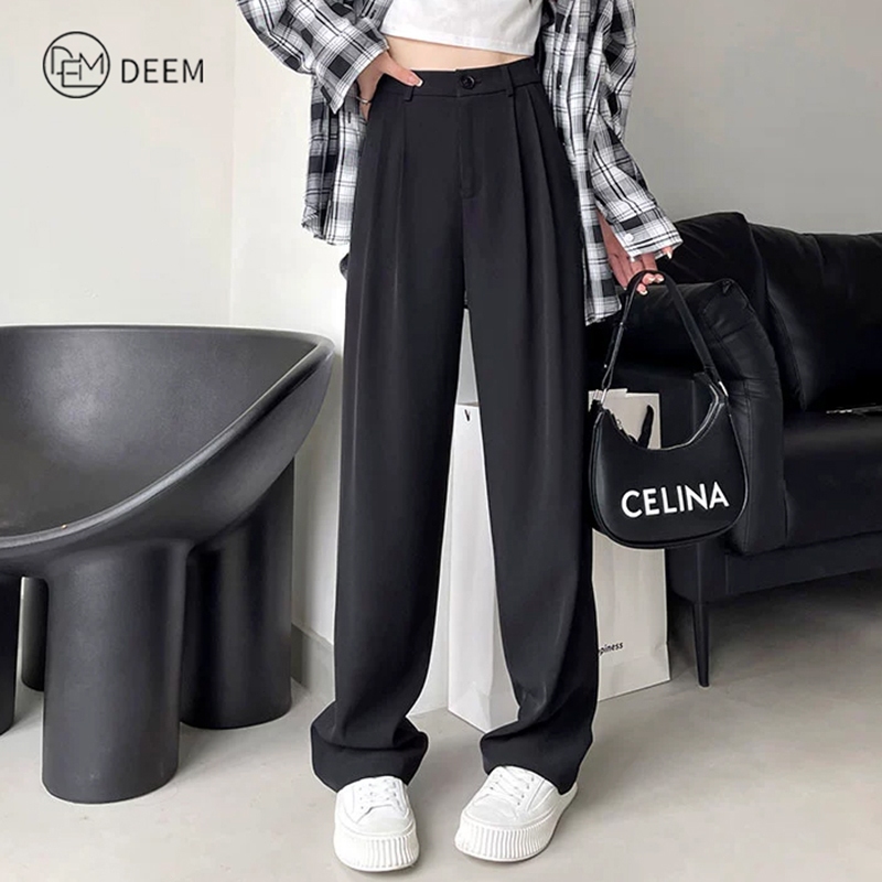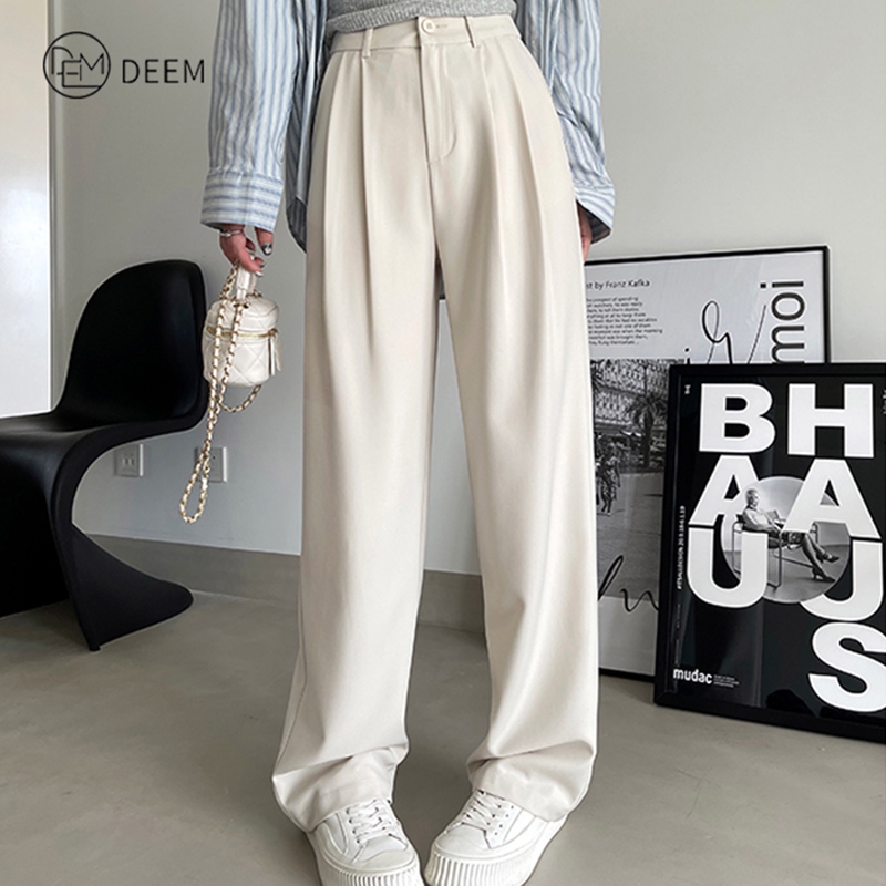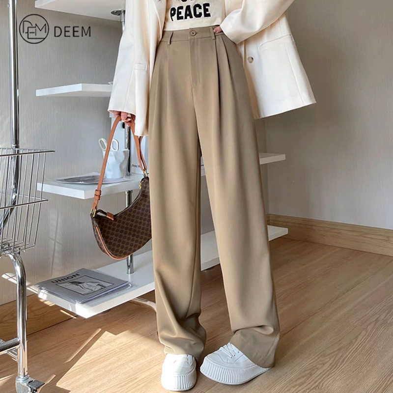 DEEM Casual Pants Slack Pants For Women Straight Cut Pants Vogue Pants Trousers Belt