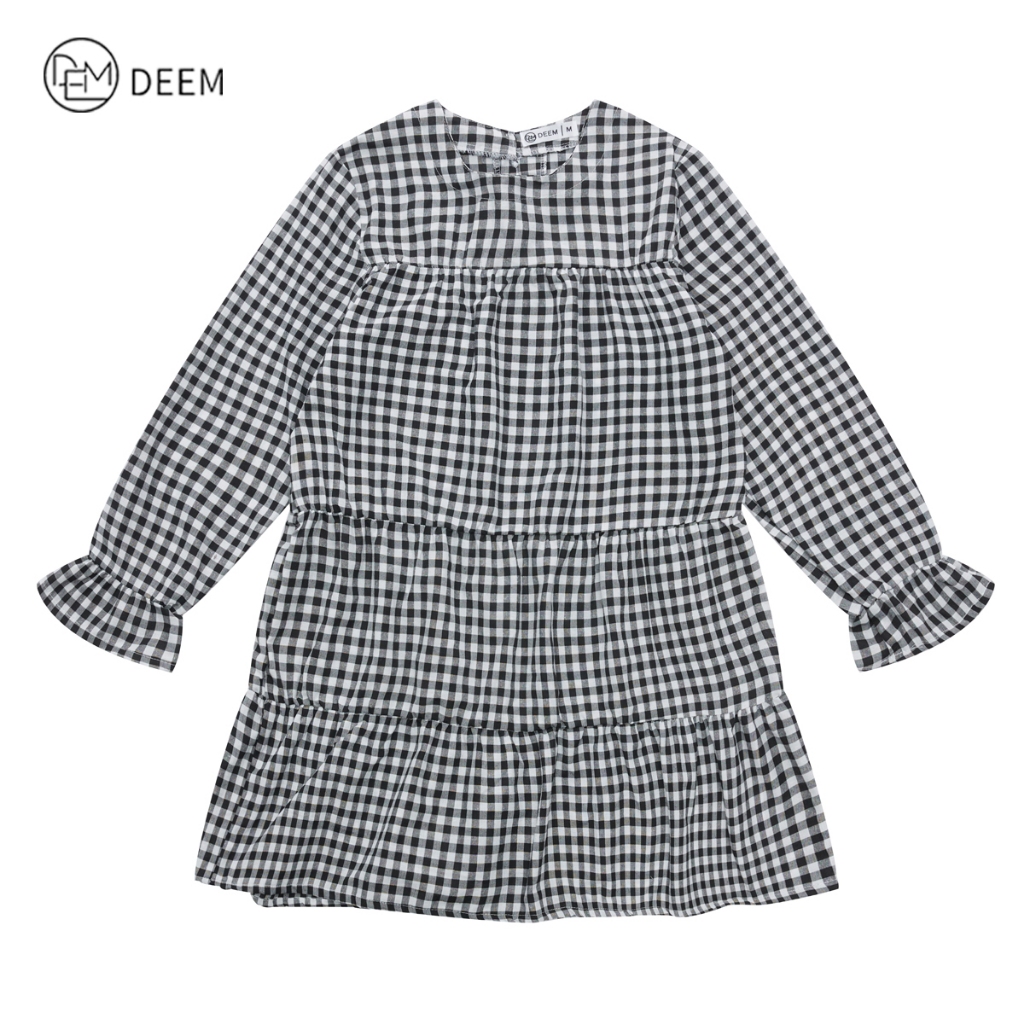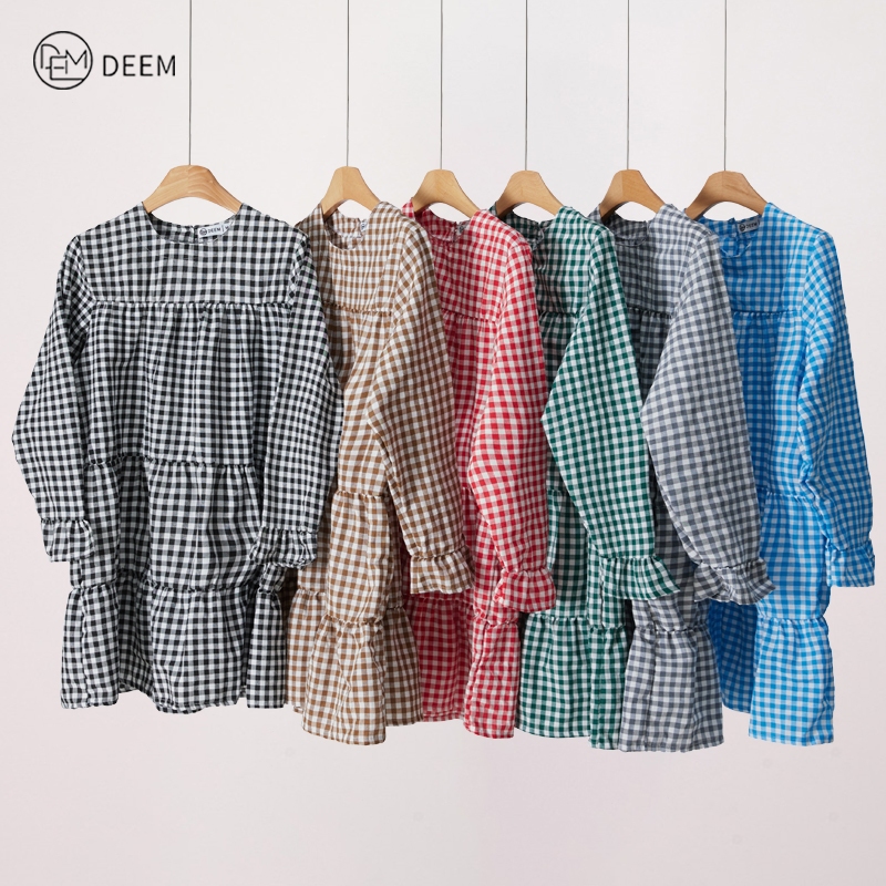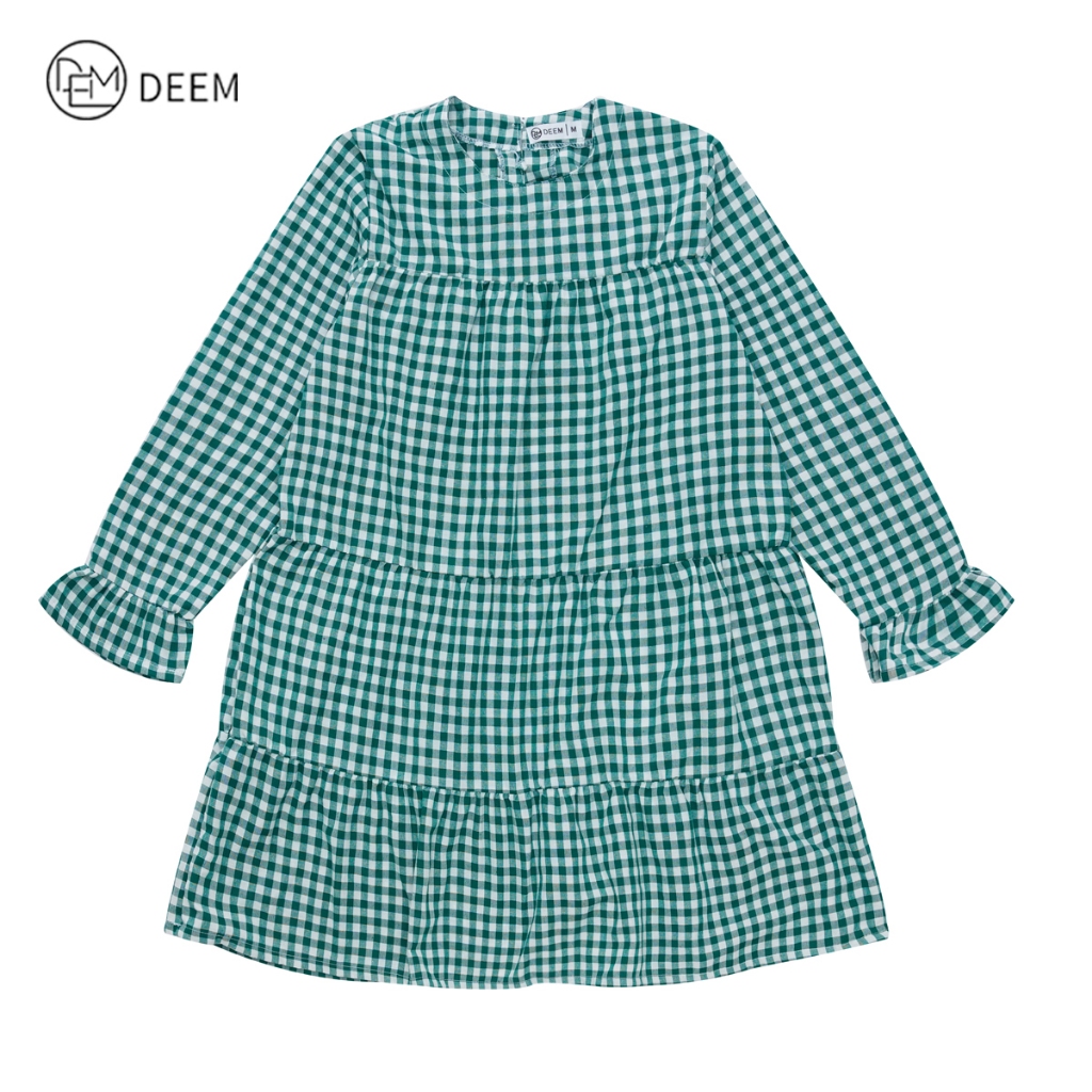 DEEM Perempuan Plaid Dress Lengan Panjang Baju Women’s Cantik Long Sleeved Casual