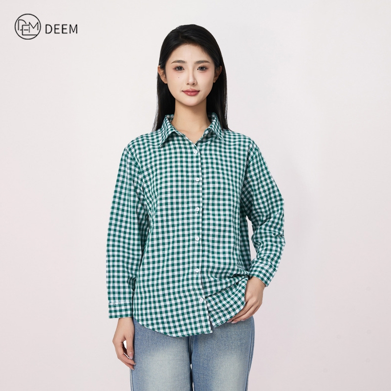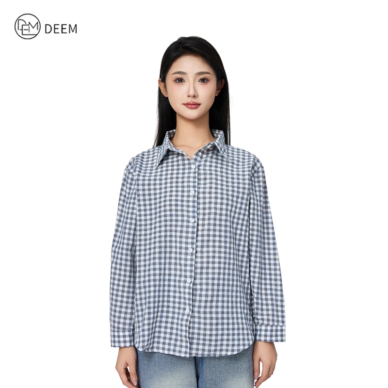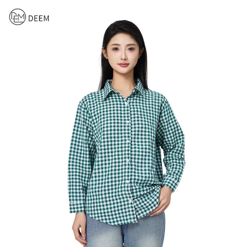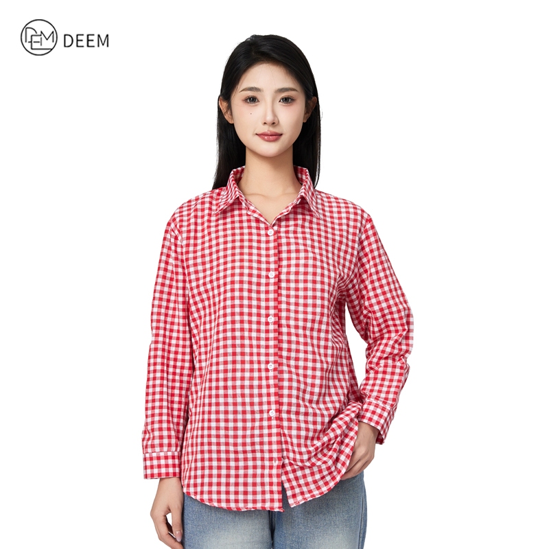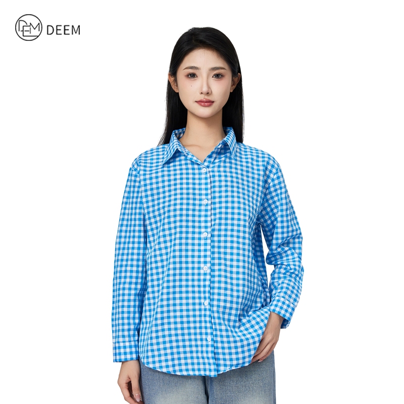 DEEM Women's Plaid Shirt Long Sleeved Kemeja petak lengan panjang wanita