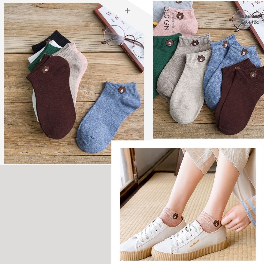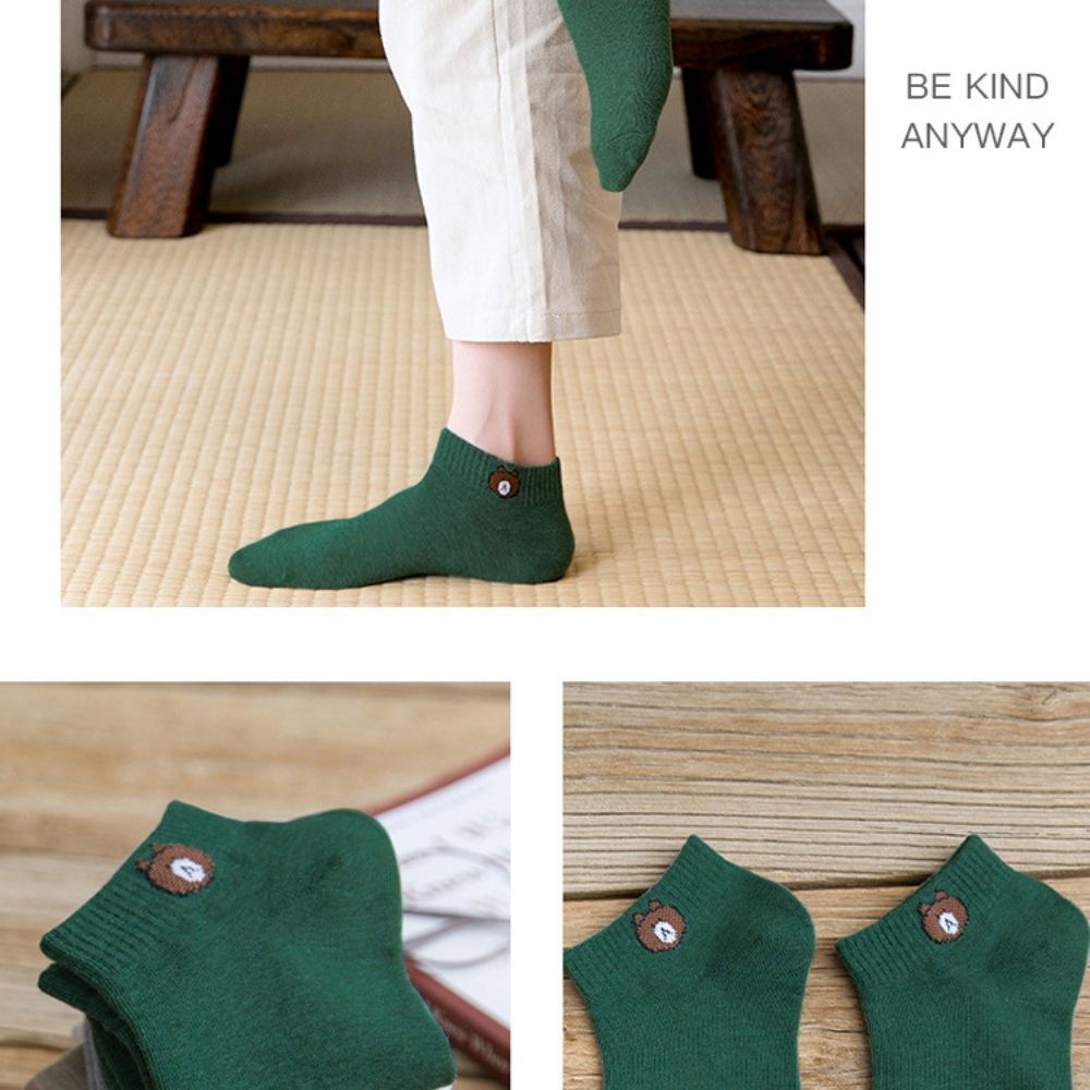 Deshop【Ready Stock】Ankle Sock/Long Sock Stokin Sekolah Stokin Kerja Socks Unisex Cute Bear White Sock Plain Colour