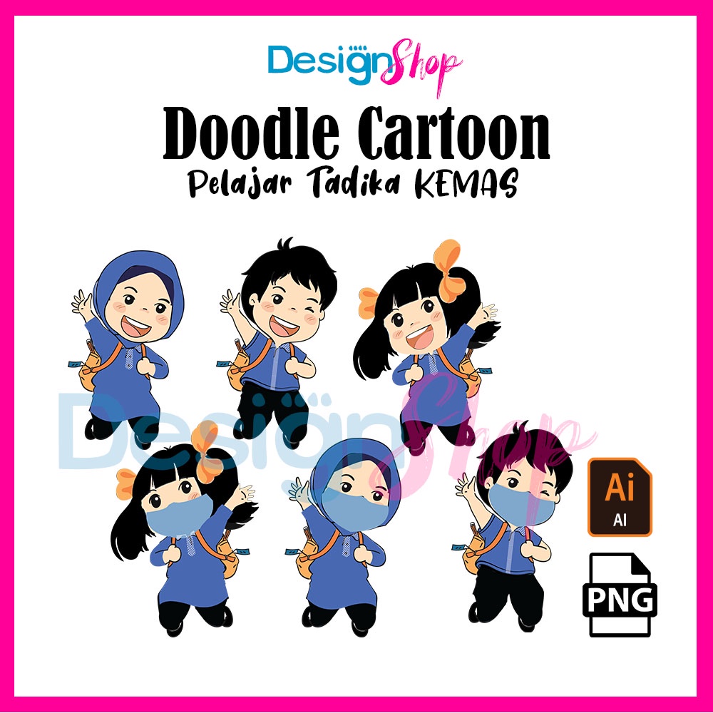 DESIGN ONLY,, NEW CUTE DOODLE CARTOON TADIKA Design Mudah & Murah [Adobe Illustrator]