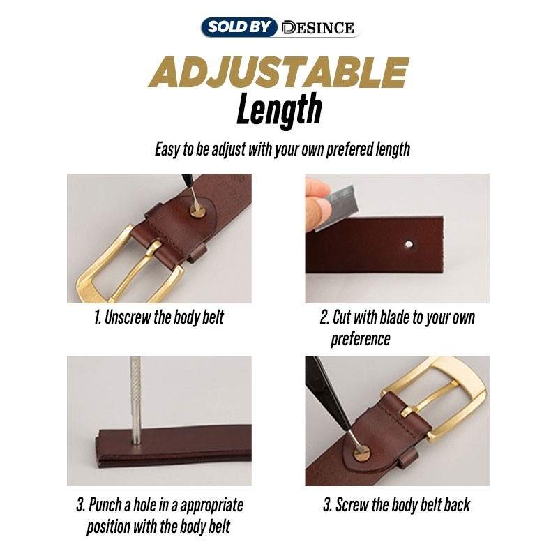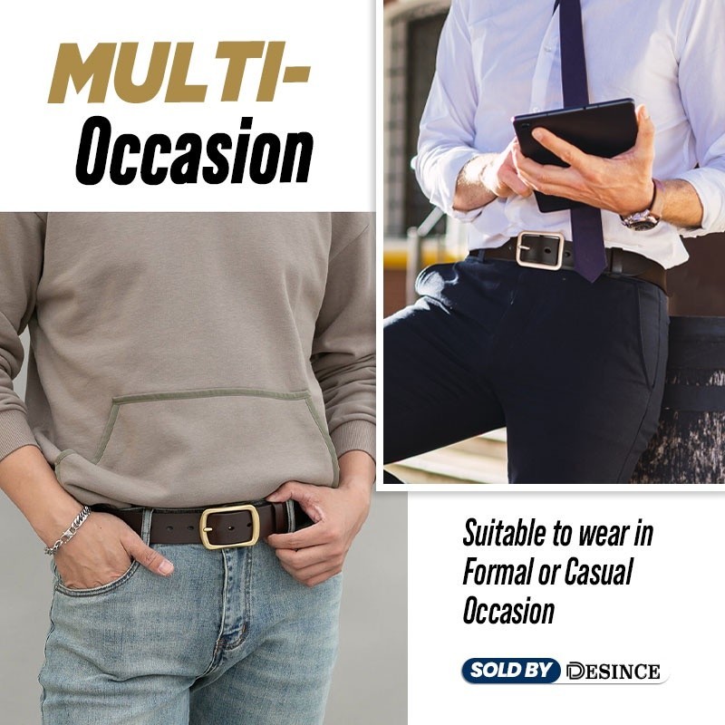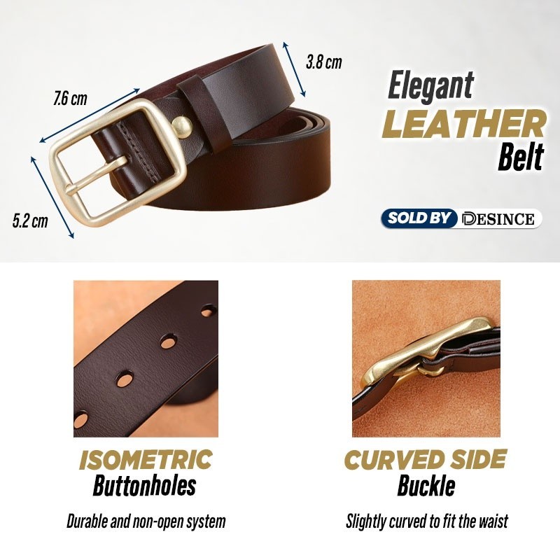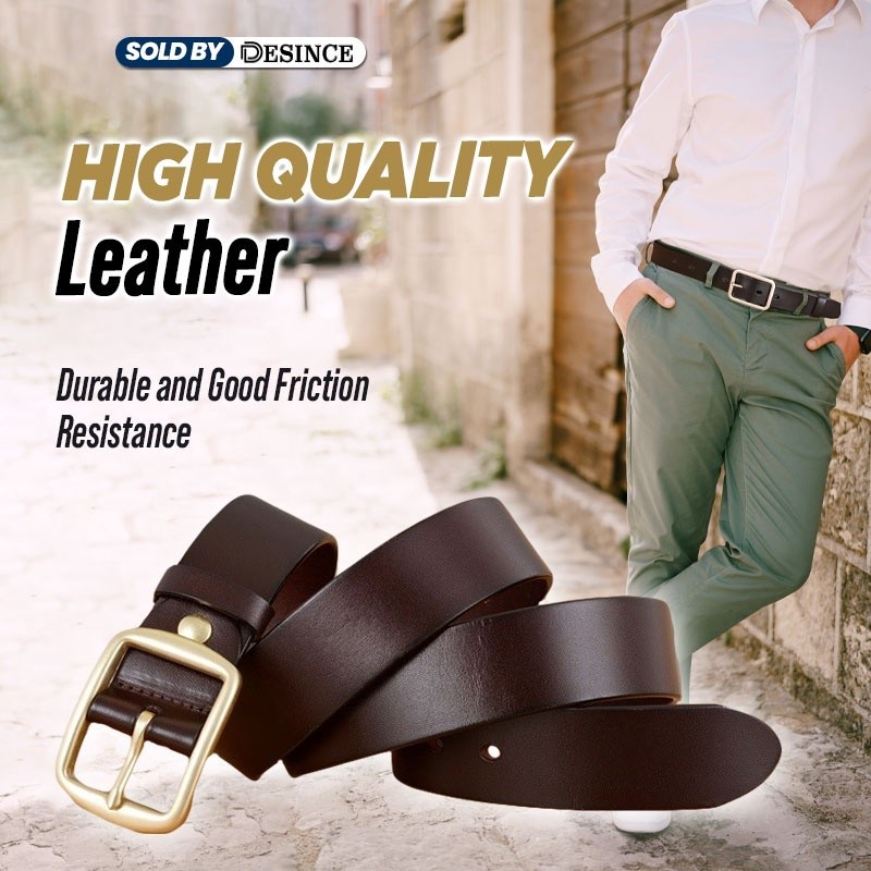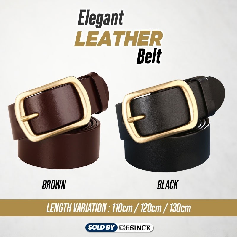 ?? DESINCE Men Leather Belt Brown Leather Black Belt Buckle Belt Golden Classy Men Tali Pinggang Lelaki MA 103