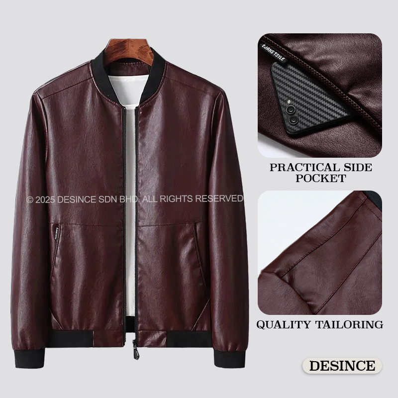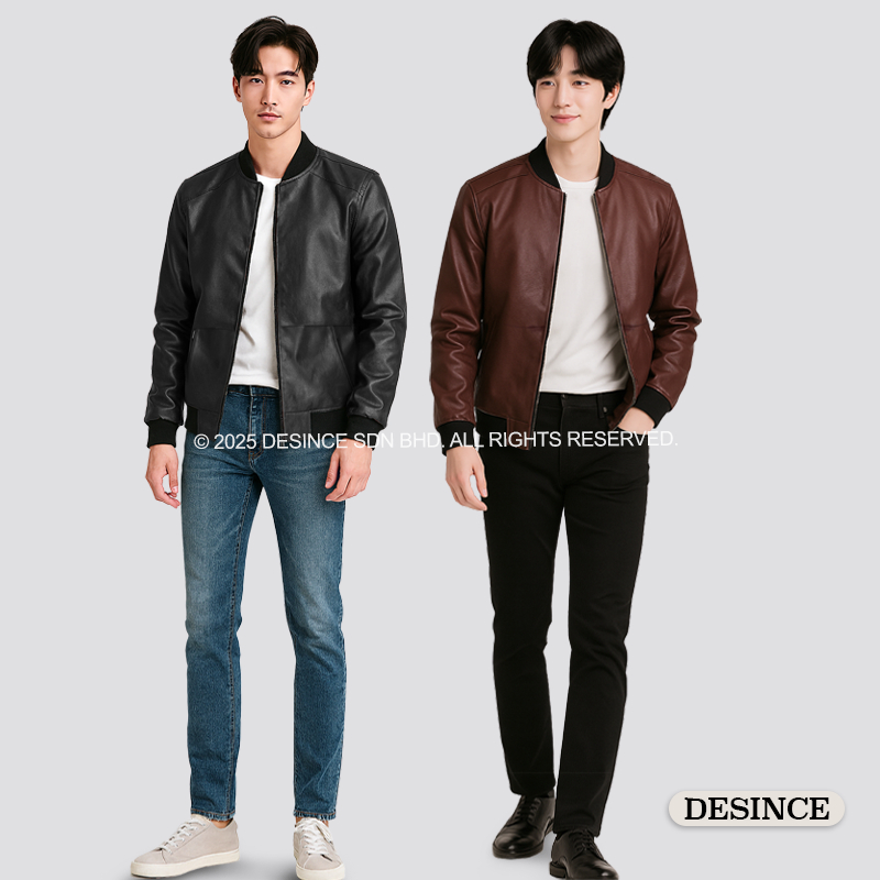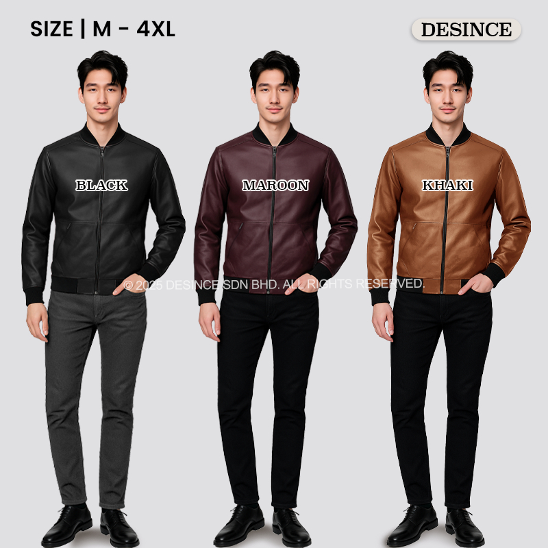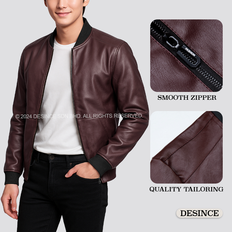 ?? DESINCE Men Leather Jacket PU Leather Jaket Kulit Motorcycle WindBreaker Casual Smart Outerwear Lelaki MT 189