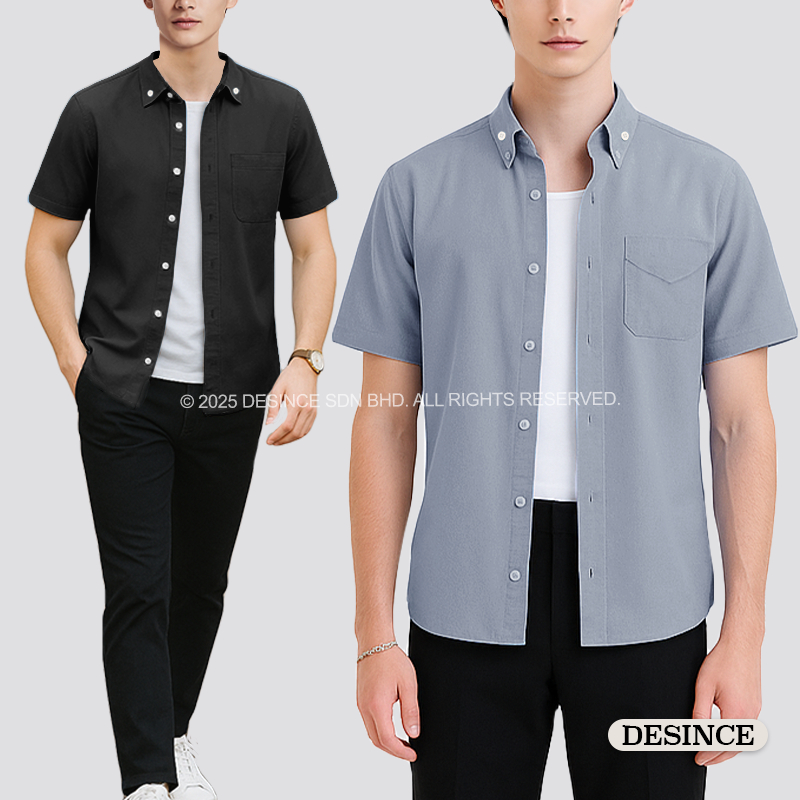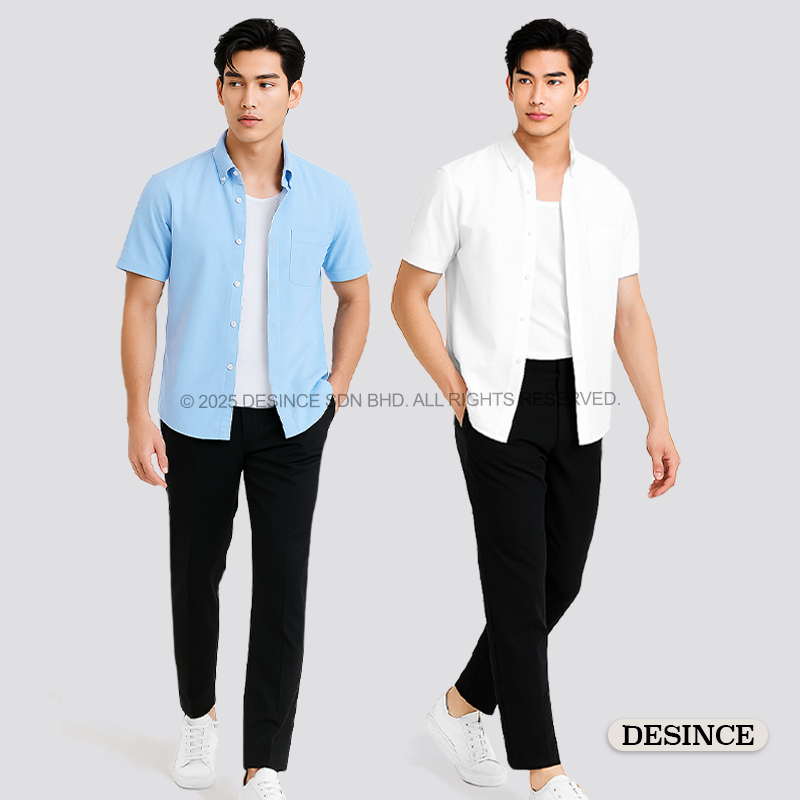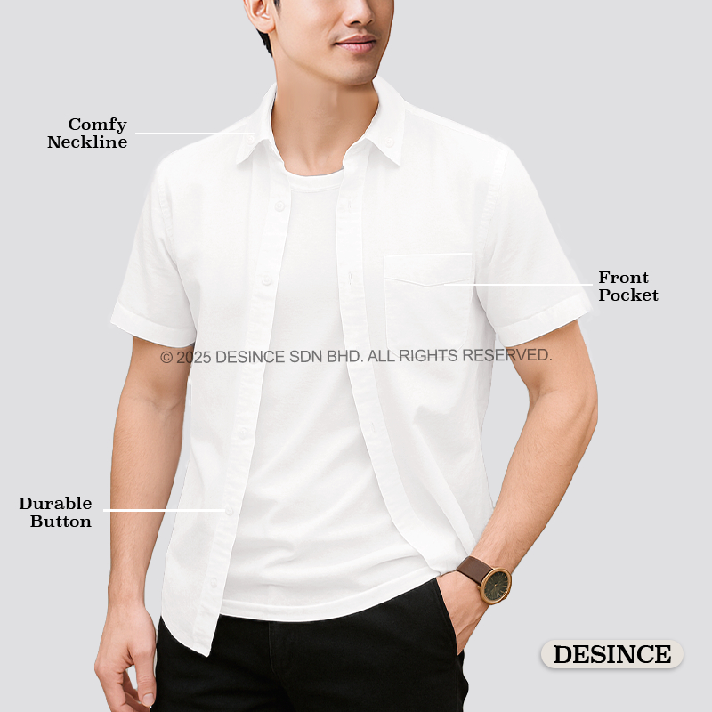 ?? DESINCE Men Short Sleeve Shirt Man Office Smart Casual Top Formal Shirt Collar Short Sleeve Baju Formal Lelaki MT 005