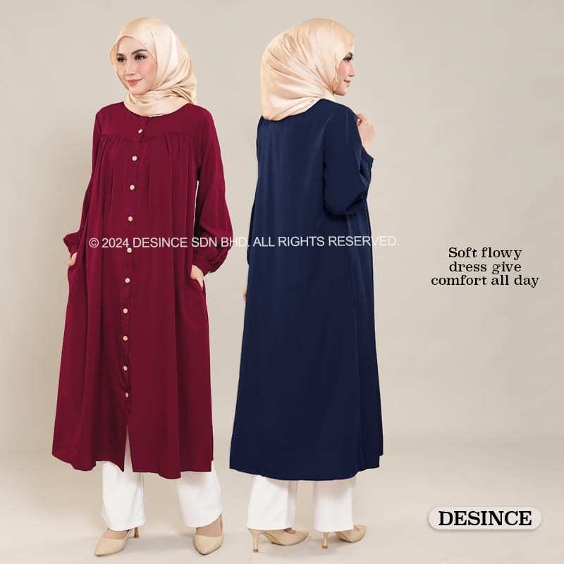 ?? DESINCE Muslimah Dress Long Dress Full Length Dress Maxi Dress Wanita Baju Raya Plain Color WW 001