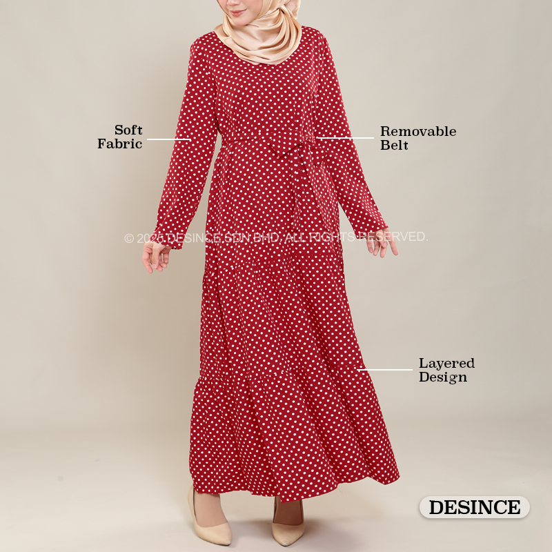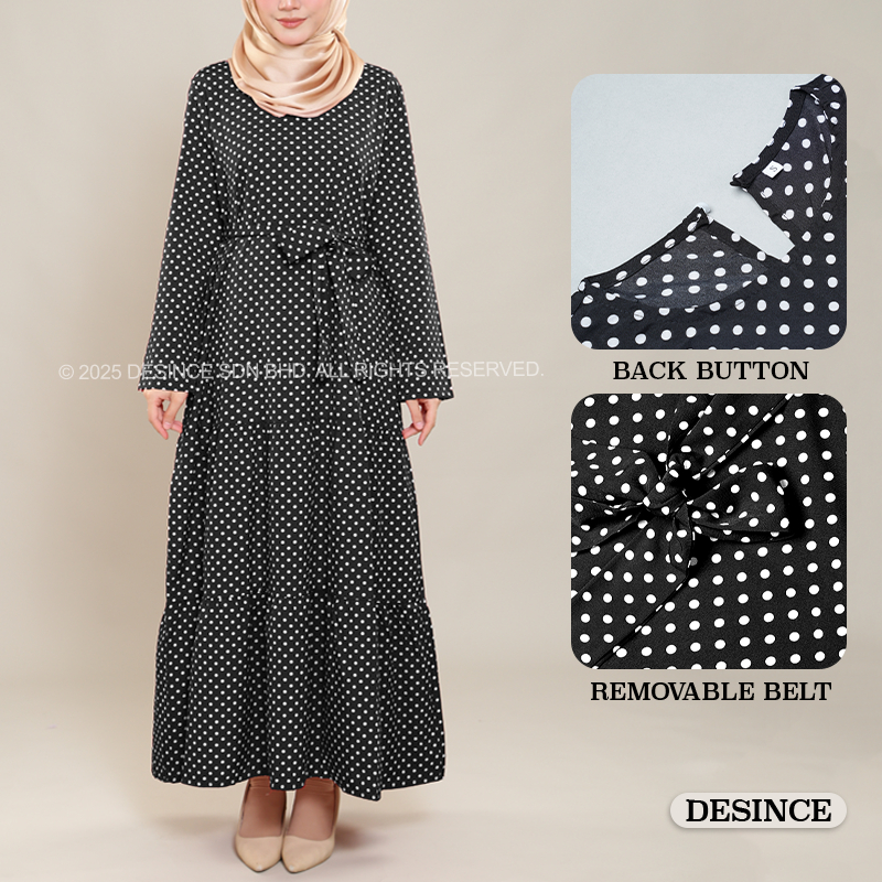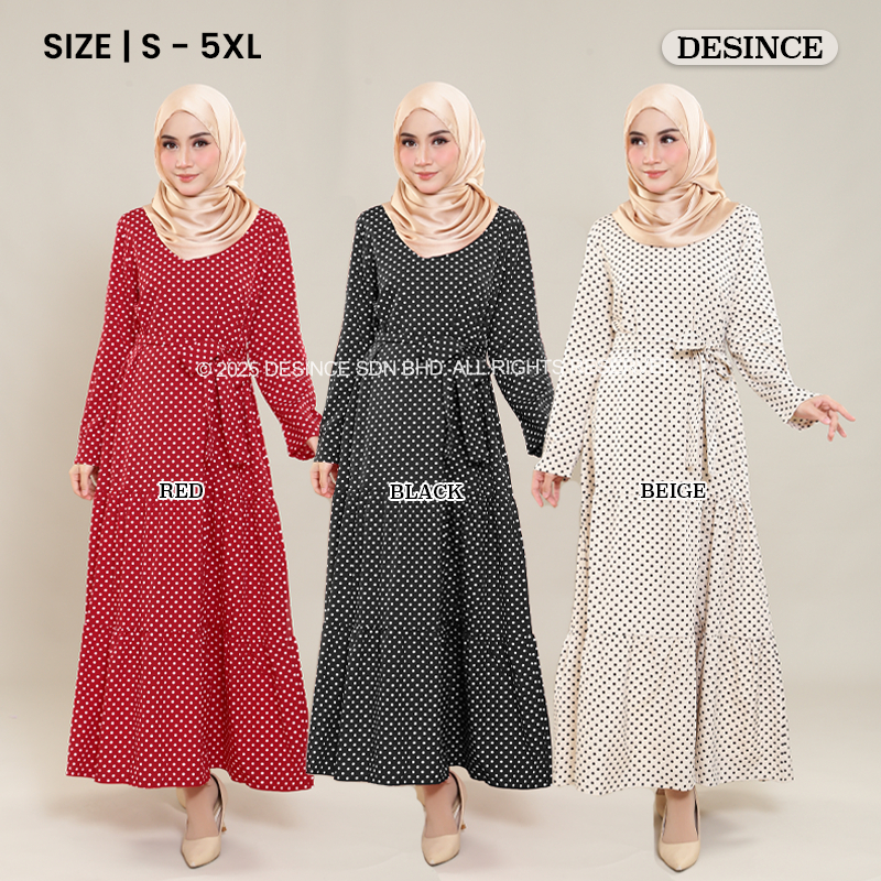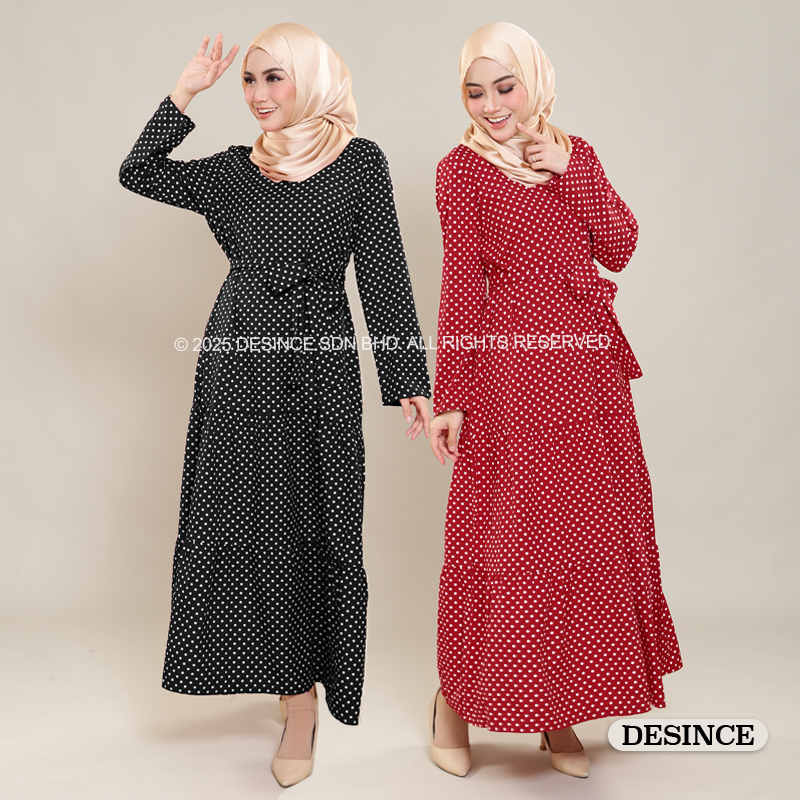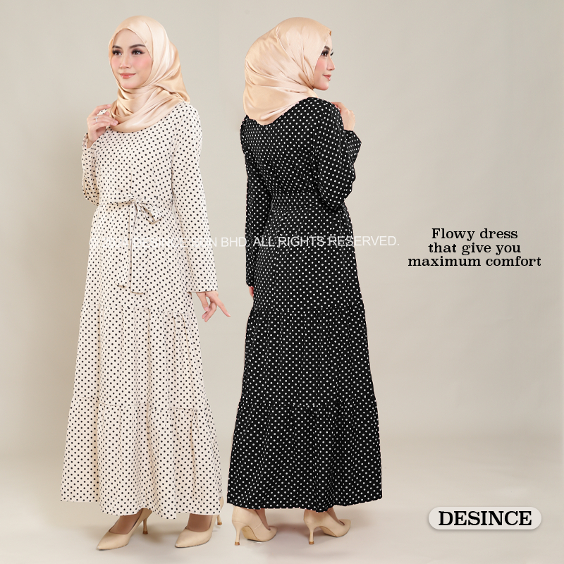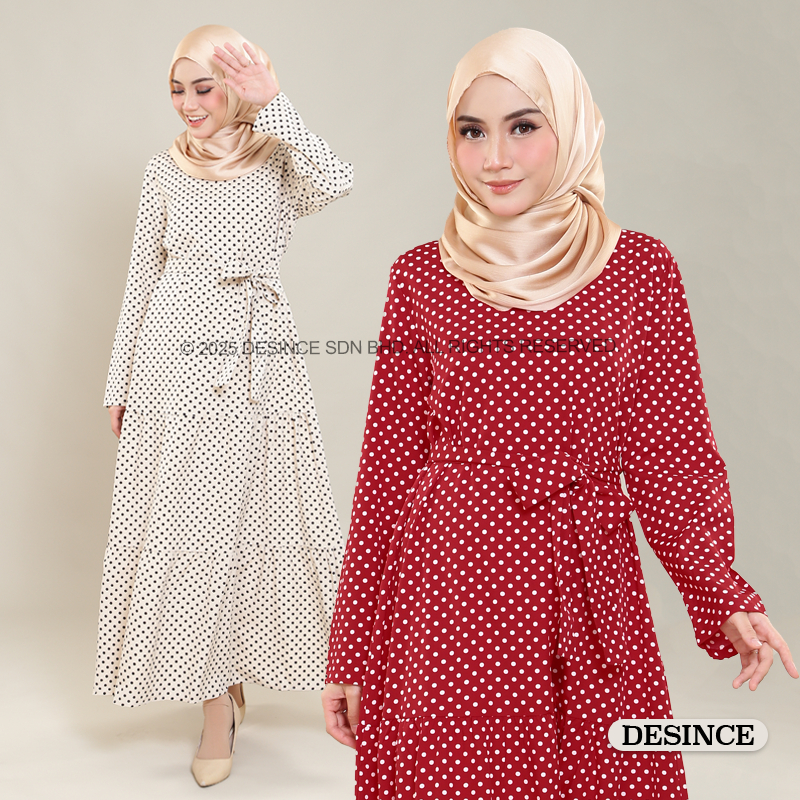 ??DESINCE Women Dress Long Dress Polka Dot Retro Maxi Dress Full Sleeve Long Sleeve Dress Panjang Wanita Muslimah WW 005