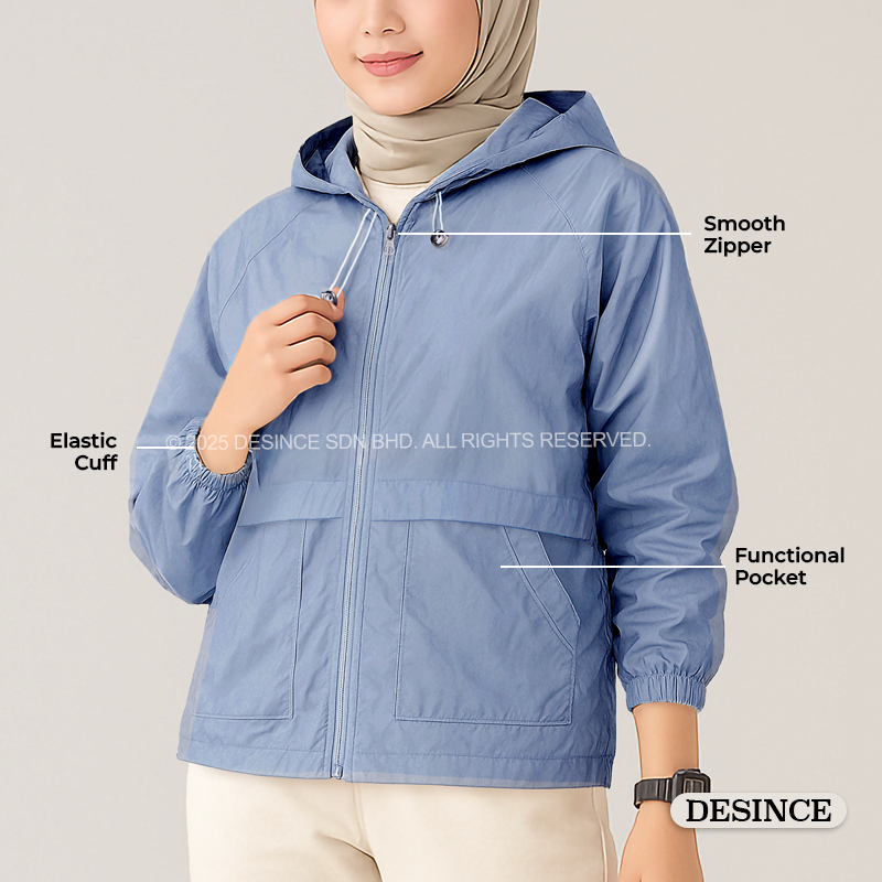DESINCE Women Windbreaker Outerwear for Running Hiking Jogging Sports Casual Relaxed Fit Thin Nylon Jacket Wanita WT 158