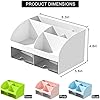 Desk Organizer with 6 Compartments and 2 Drawers, Plastic Makeup Organizer, Pen Holder for Desktop Storage, Desk Organization for School, Home, Office Supplies (White)