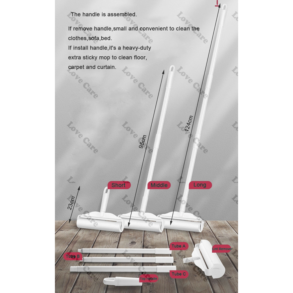 Detachable Long Handle Adhesive Sticky Roller, Pet Hair Styling Tool, Garment, Dust Removal Brush, Sofa, Carpet Cleaner
