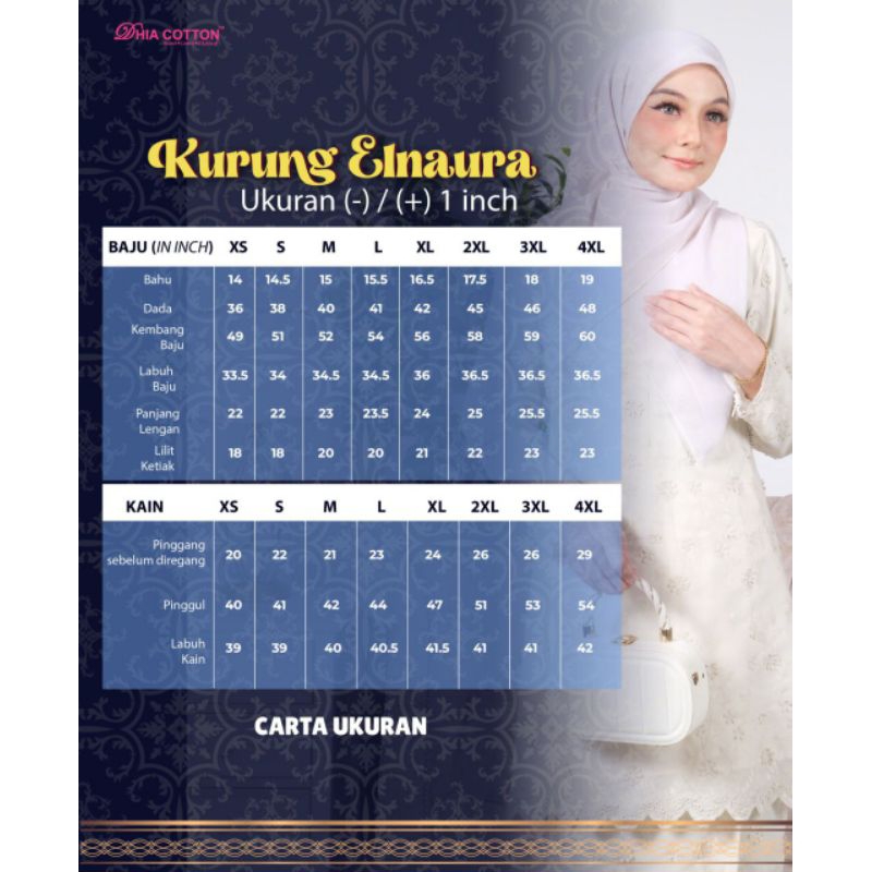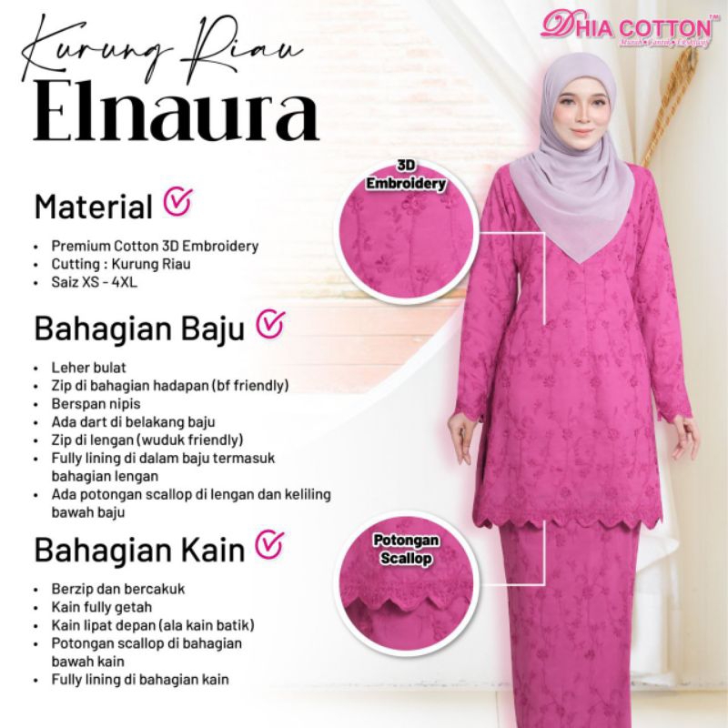 Dhia Cotton • ELNAURA Baju Kurung Cotton Embroidery 3D • Full Lining • Wuduk Friendly • BF Friendly