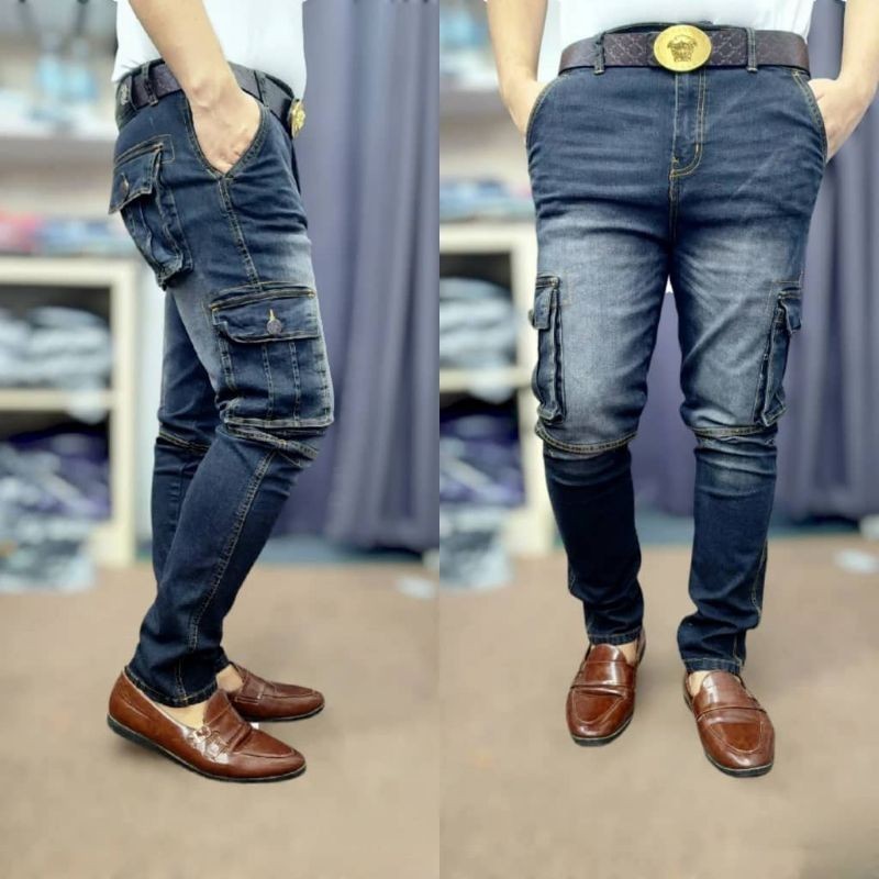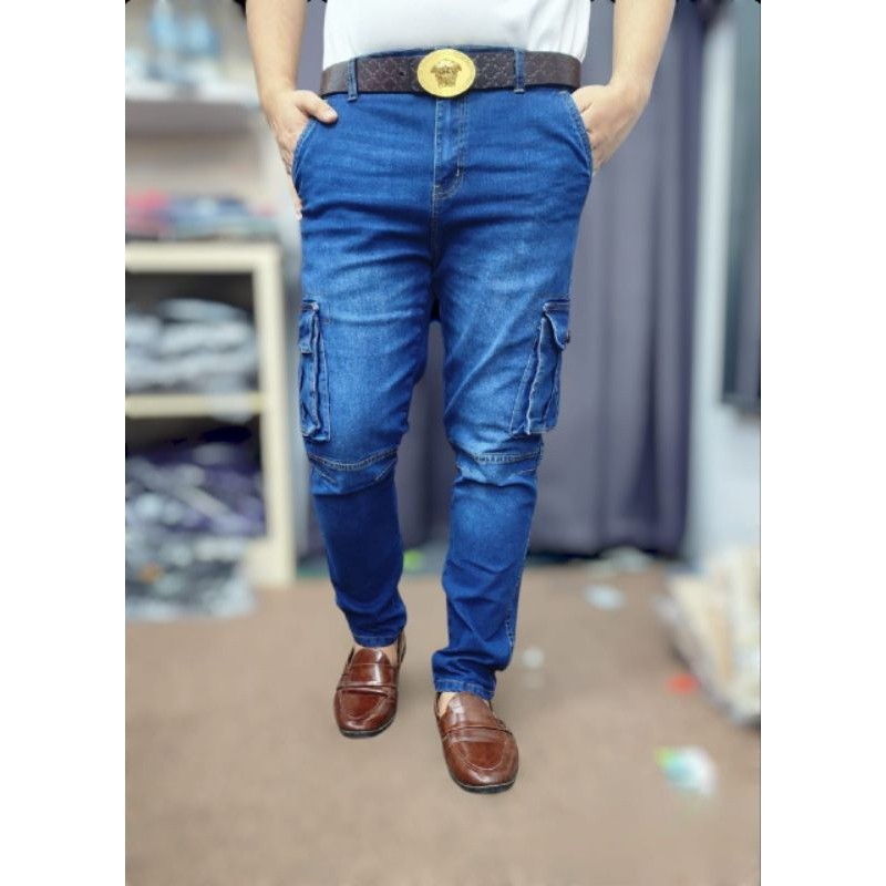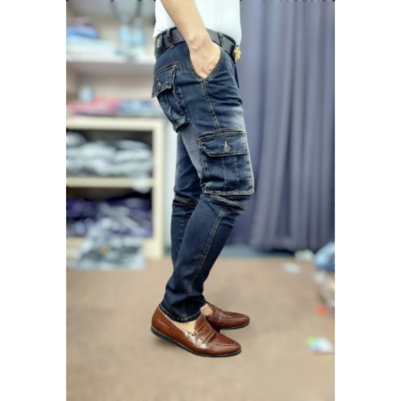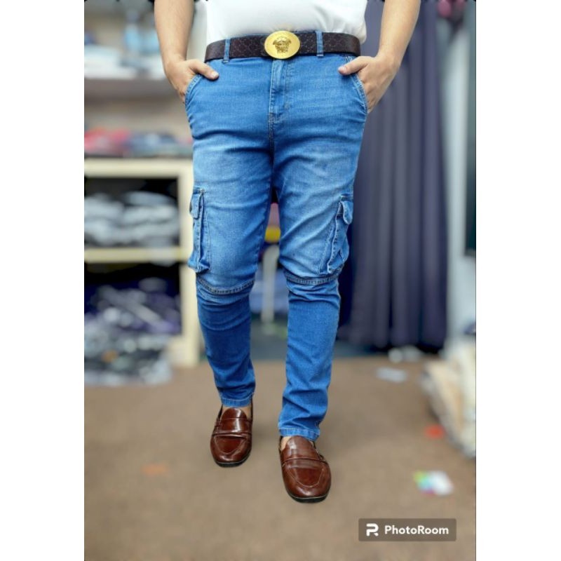 (Dieselll)Men's 6 pocket Stretchable cargo jeans premium Quality denim