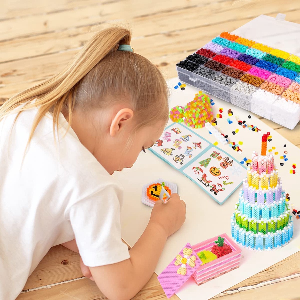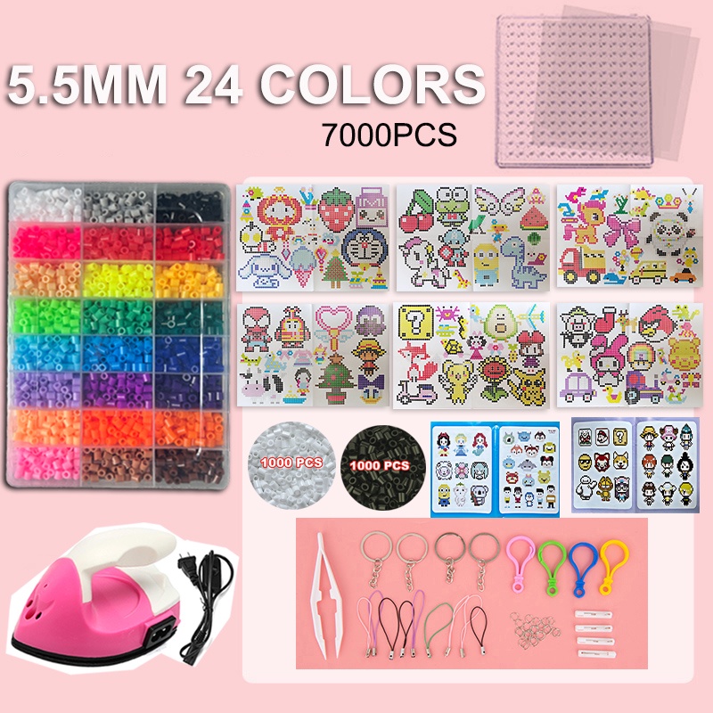 DIY Toy Fuse Beads Craft Kit 7000 PCs Kids Activity Gift Mainan Budak Perempuan Melty Fusion Perler Beads Colored Pearl Art and Craft Set 拼豆 手工DIY