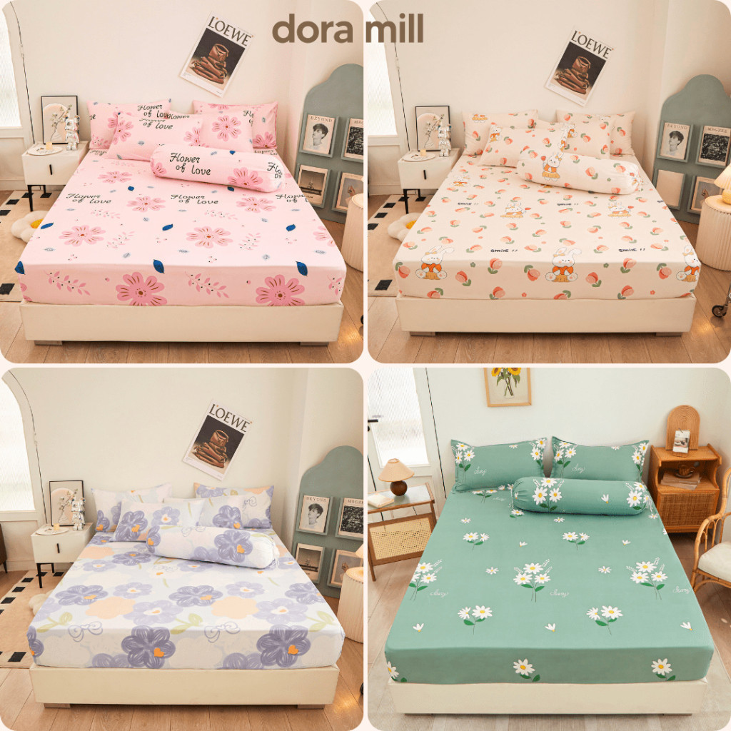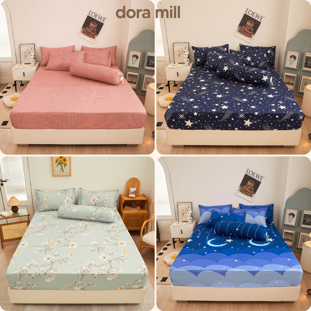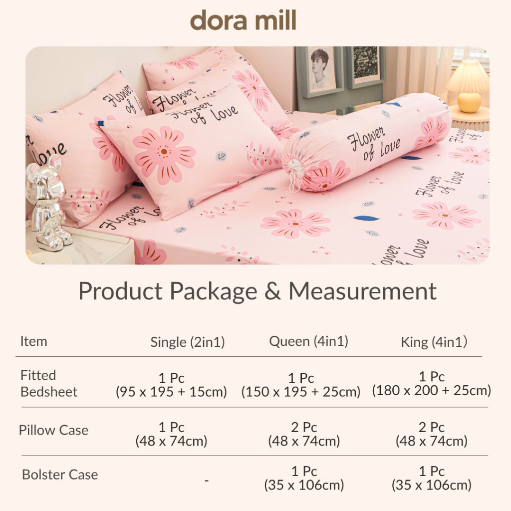 DM ?4in1 Queen King 2in1 Single Bedsheet Set Cadar Murah Getah Keliling Pillow Case Bolster Case V#4