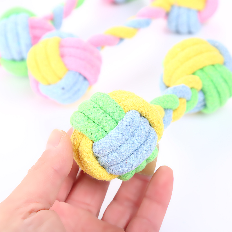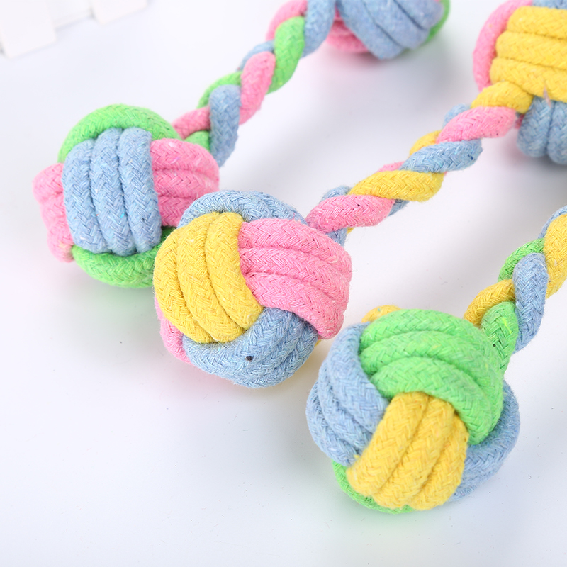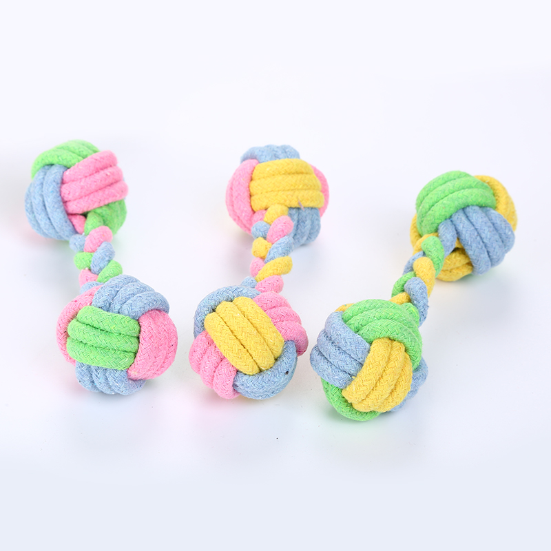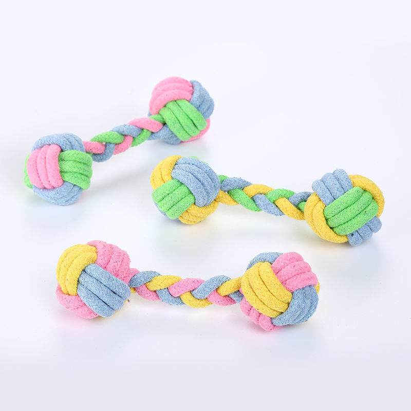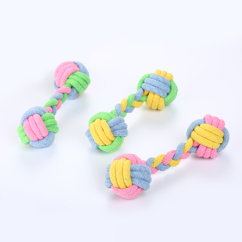 Dog Cotton Rope Toy Color Barbell Hand-woven Molar Bite-resistant Pet Supplies