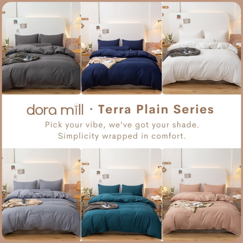 DORAMILL Terra Plain Series Premium Cotton Quilt Cover 880TC Single Queen King Sarung Comforter #BNP