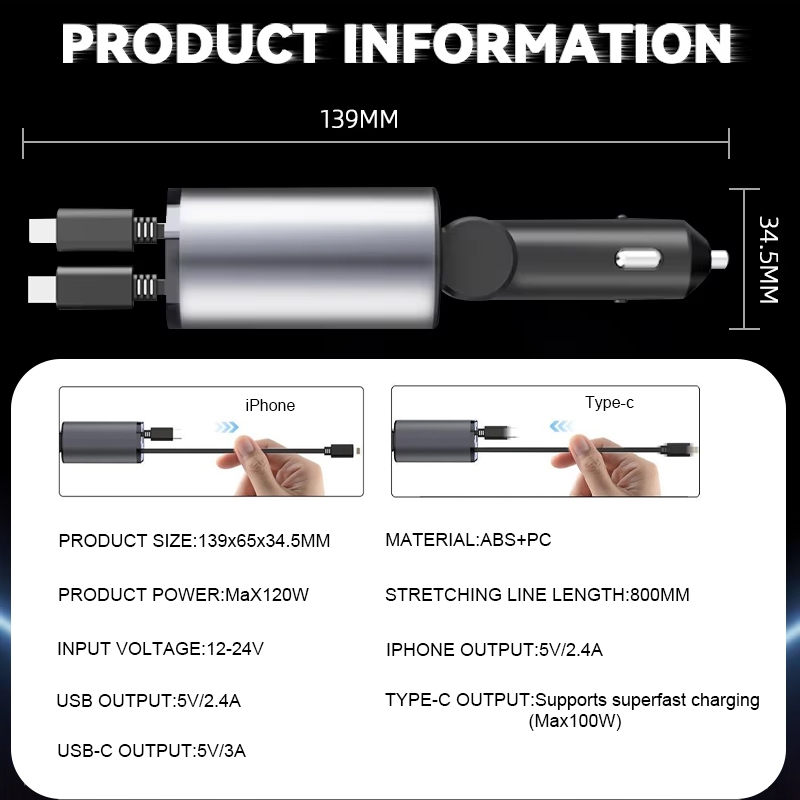 DOSEN 120W 4 In 1 Car Charger Scalable Cable Suitable Fast Charge Mobile Phone Adapter For All Mobile Phones