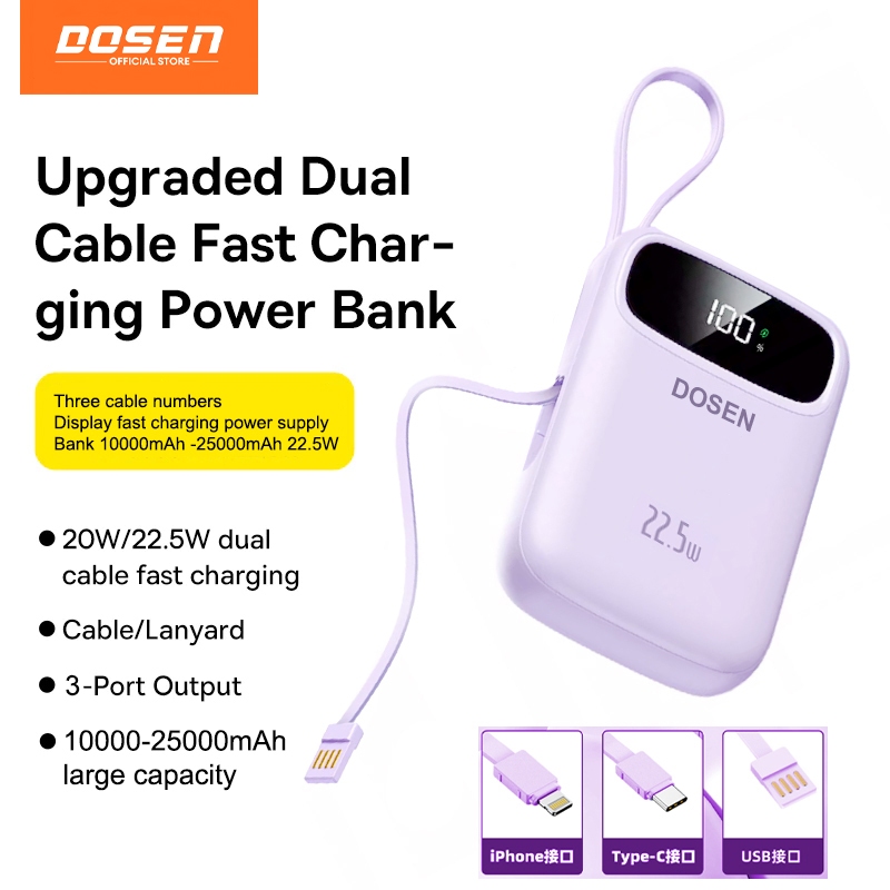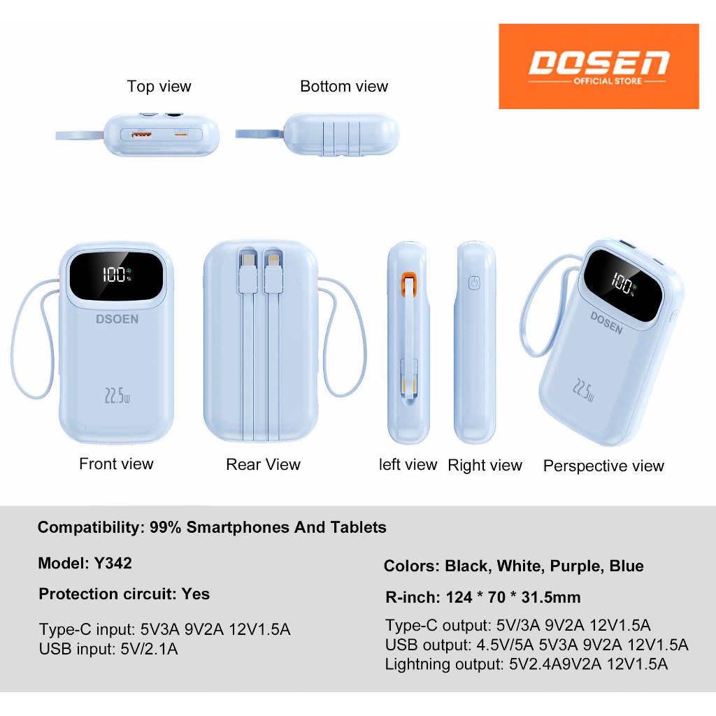 DOSEN Original Powerbank fast charging Y342 PD22.5W Portable 10000mAh 20000mAh 25000mAh Comes with three wires