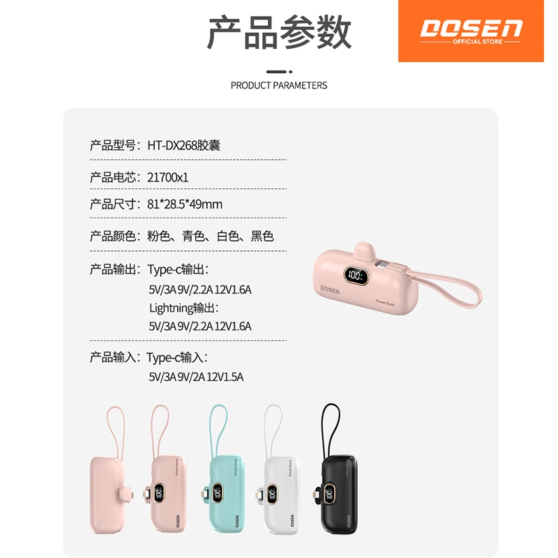 DOSEN Power Bank DX268 iPhone Equipped With iPhone Type-C 2 Output Head 2.1A (6000/8000mAh)
