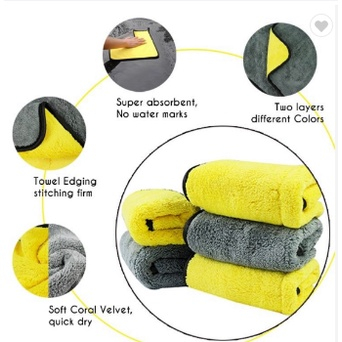 Double Microfiber Car Cleaning Towel Multipurpose High Water Absorption Plush Wax Polish Cloth Kain Lap Kereta 抹车布