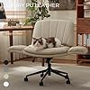 Dowinx Criss Cross Chair with Five-Level Adjustable Arms and Wheels - Comfortable Ergonomic PU Leather Swivel Vanity Chair - Computer Makeup Gaming Chair for Home Office, Bedroom, Vanity Room (Khaki)
